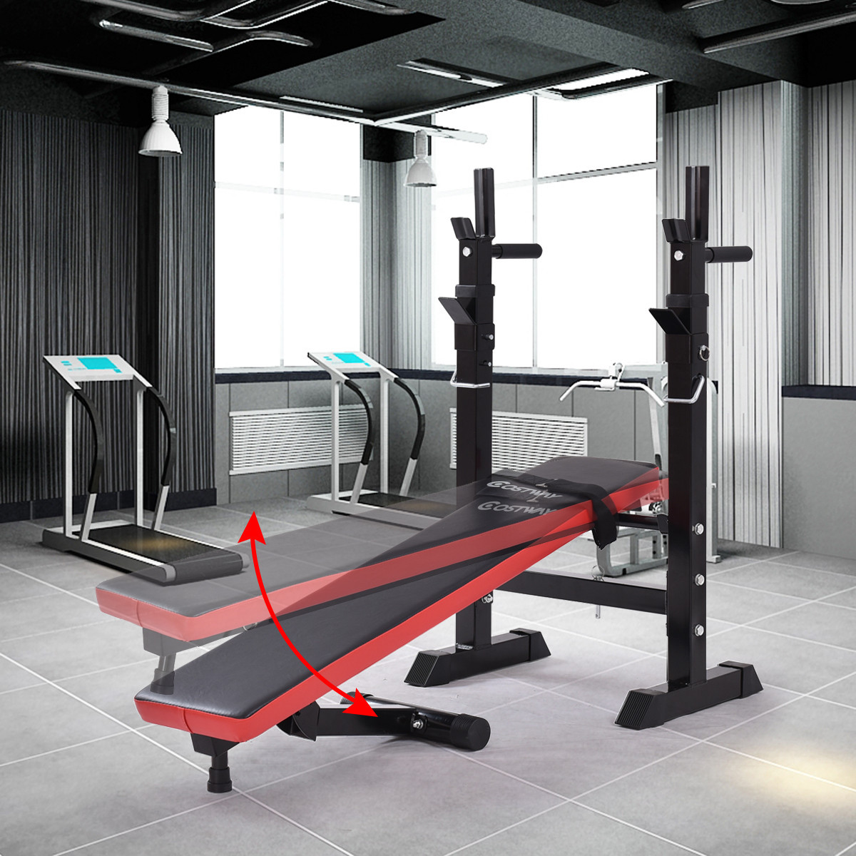 Складная конструкция, идеальна для домашнего использования. Профессиональная скамья для жима, наклонная скамья, скамья для пресса, брусья для отжимания. С помощью этой профессиональной скамьи для жима возможно множество вариантов для тренировки, создающих оптимальную нагрузку на мышцы груди, рук, плеч, брюшного пресса. Подходит для всех силовых штанг .