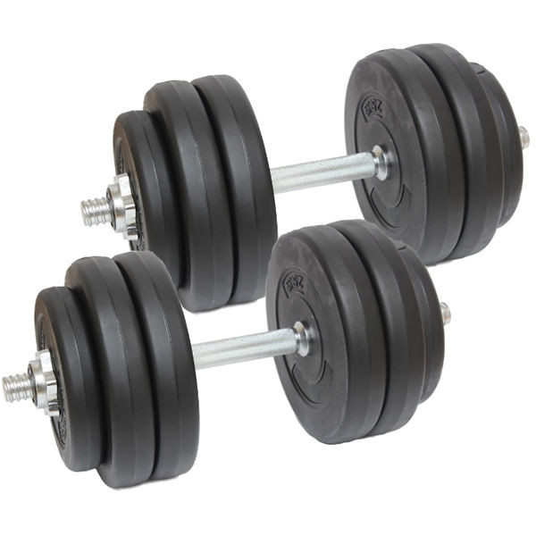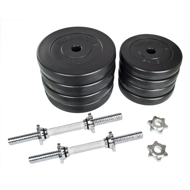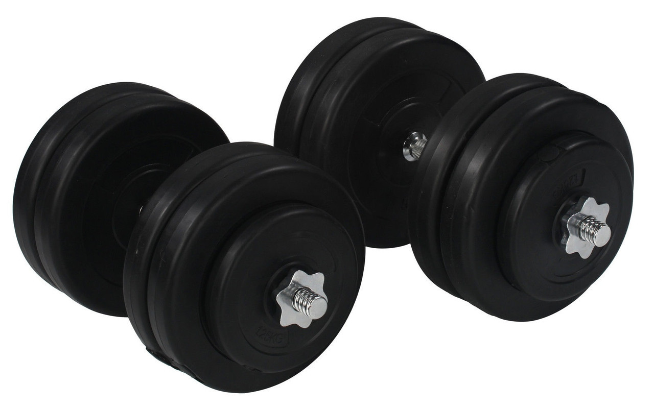 Гантелі 2×23 кг з металевим грифом — ідеальні для дому та спортзалу