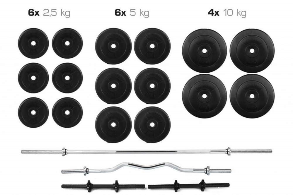 Представляємо набір навантажень (Штанга + гантелі) із загальною вагою 101 кг.за допомогою даного набору ви зможете повноцінно займатися зі штангою і гантелями як і в спортзалі так і в домашніх умовах. Диски підходять до прямого грифу, w-образному і до гантельним грифам тому набір вважається універсальним. Ви зможете чергувати заняття зі штангою і гантелями, тим самим рівномірно опрацьовувати різні групи м'язів.