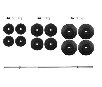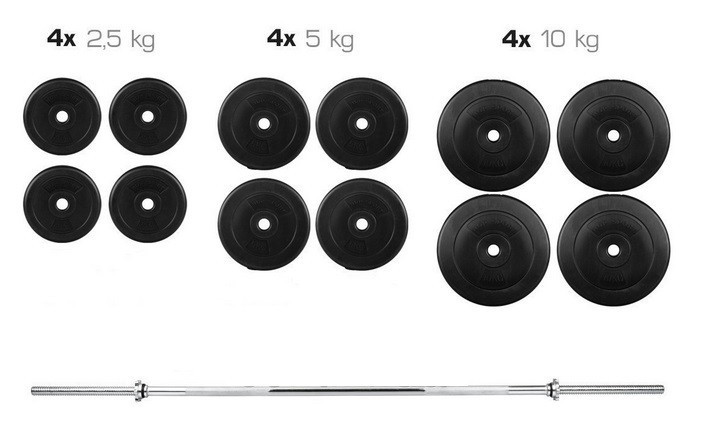 Представляємо набір навантажень (Штанга) із загальною вагою 80 кг.за допомогою даного набору ви зможете повноцінно займатися зі штангою і гантелями як і в спортзалі так і в домашніх умовах. Диски підходять до прямого грифу, w-образному і до гантельним грифам тому набір вважається універсальним. Ви зможете чергувати заняття зі штангою і гантелями, тим самим рівномірно опрацьовувати різні групи м'язів.