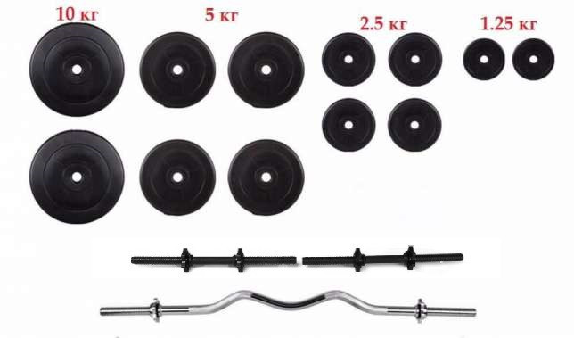 Представляем набор нагрузок с общим весом 60 кг. С помощью данного набора Вы сможете полноценно заниматься со штангой и гантелями как и в спортзале так и в домашних условиях. Диски подходят к прямому грифу, w-образному и к гантельным грифам поэтому набор считается универсальным. Вы сможете чередовать занятия со штангой и гантелями, тем самым равномерно прорабатывать различные группы мышц.