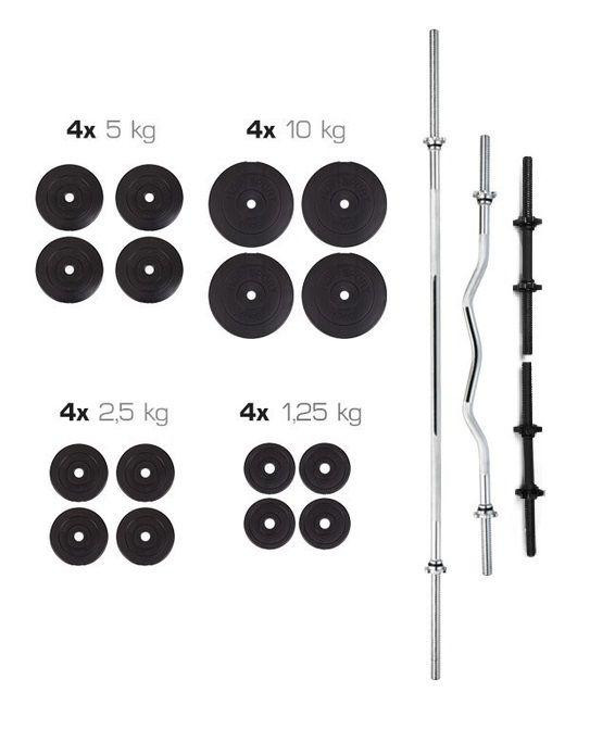 Представляем набор нагрузок (Штанга + Гантели) с общим весом 91 кг. С помощью данного набора Вы сможете полноценно заниматься со штангой и гантелями как и в спортзале так и в домашних условиях. Диски подходят к прямому грифу, w-образному и к гантельным грифам поэтому набор считается универсальным. Вы сможете чередовать занятия со штангой и гантелями, тем самым равномерно прорабатывать различные группы мышц.