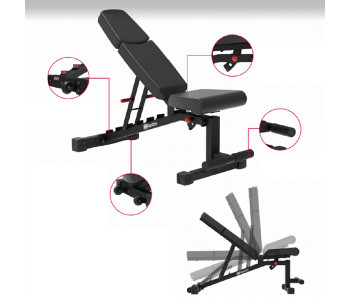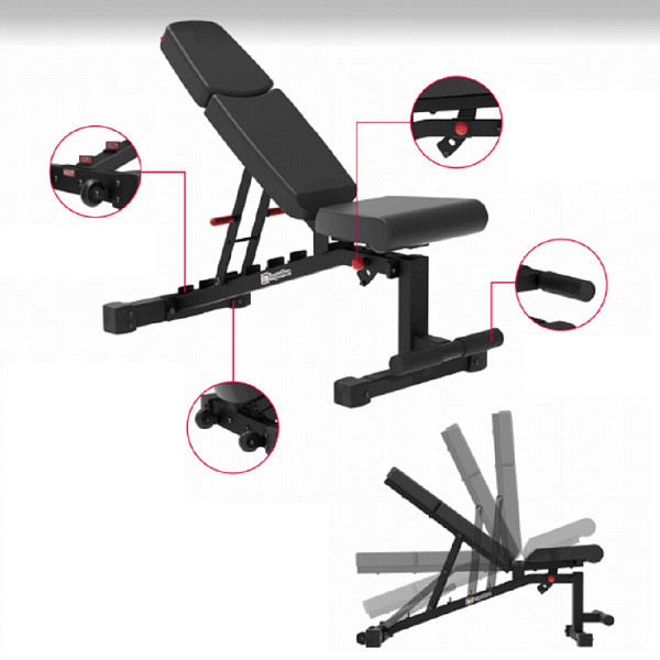 - - Ергономічна трьох-секційна конструкція лави з регульованою спинкою і притискною планкою для ніг, забезпечують найміцнішу і ефективну лаву.