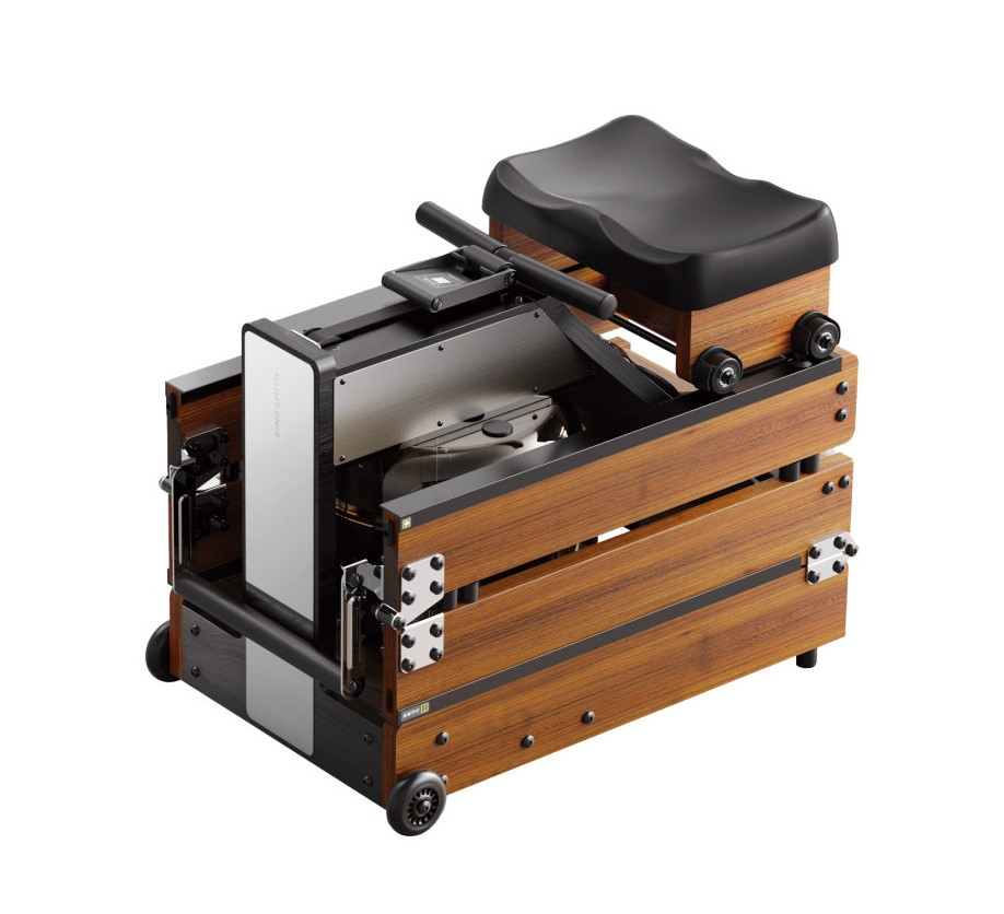 Каркас виготовлений із натурального ясена, металу та міцного пластику. Сучасний дизайн гармонійно впишеться у будь-який інтер’єр. Завдяки вбудованим колесам тренажер легко переміщується та не займає багато місця.