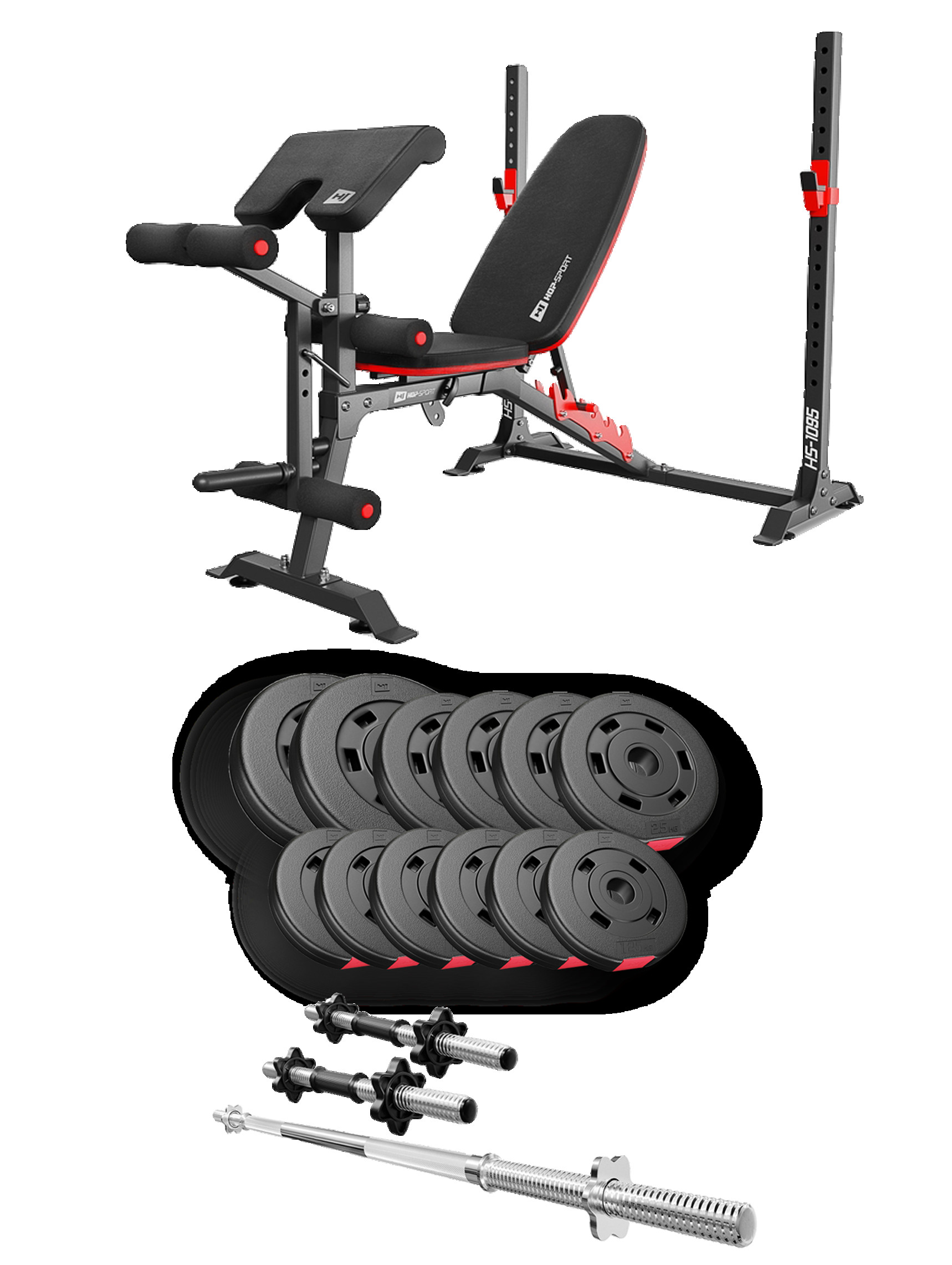 Набір Premium 38кг зі штангою і лавою HS-1095 - ідеально підібраний комплект з функціональною лавкою і найкращим поєднанням кількості і ваги дисків, щоб організувати вдома повноцінний спортзал для силових тренувань.