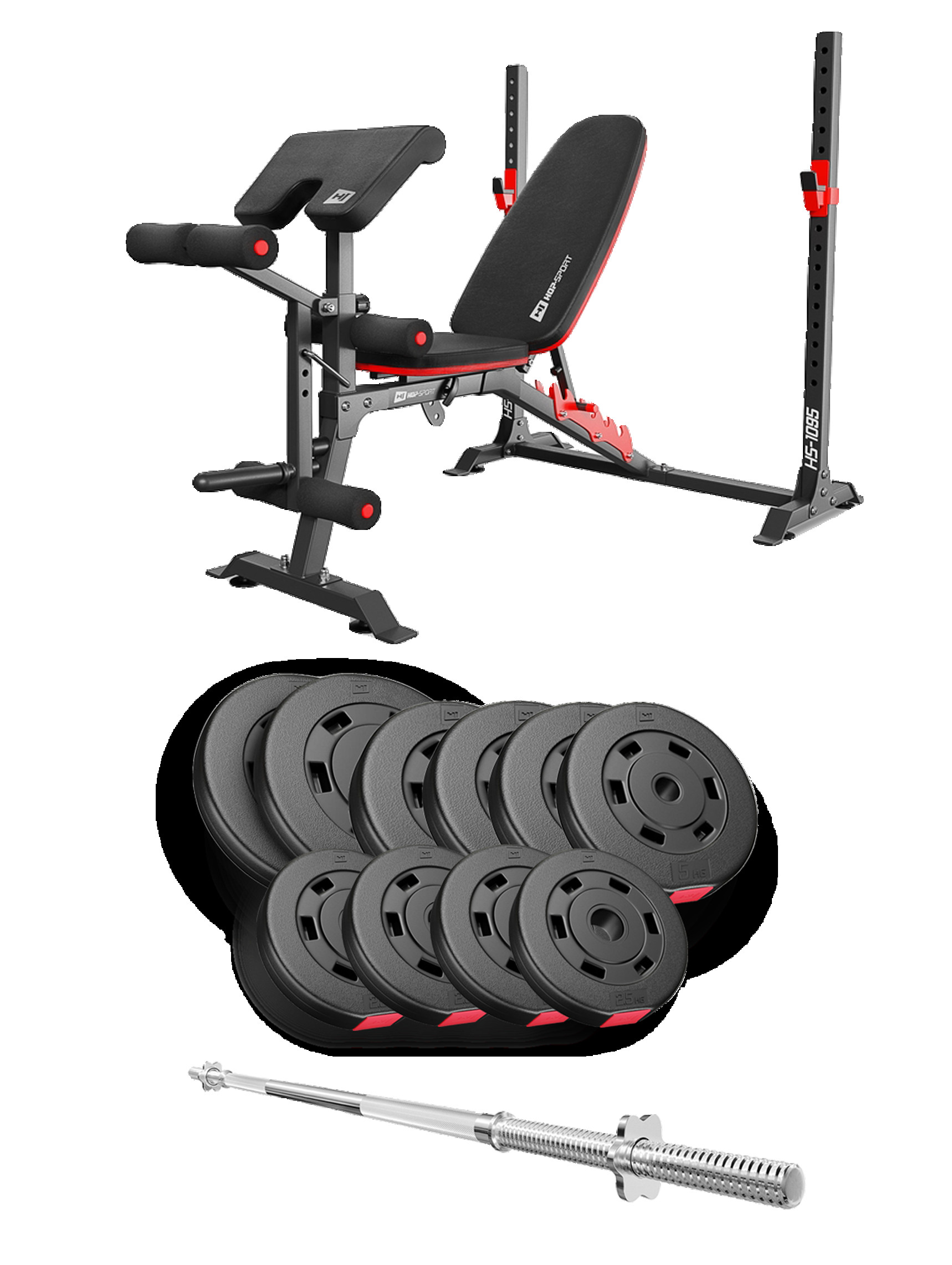 Набір Premium 59кг зі штангою і лавою HS-1095 - ідеально підібраний комплект з функціональною лавкою і найкращим поєднанням кількості і ваги дисків, щоб організувати вдома повноцінний спортзал для силових тренувань.