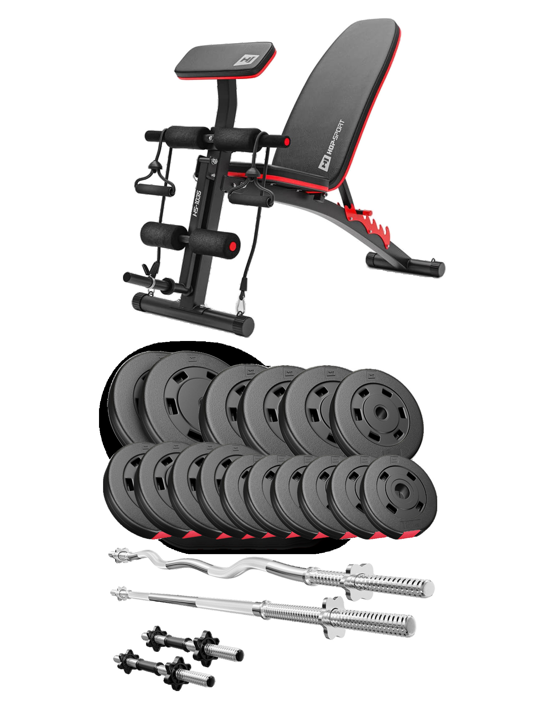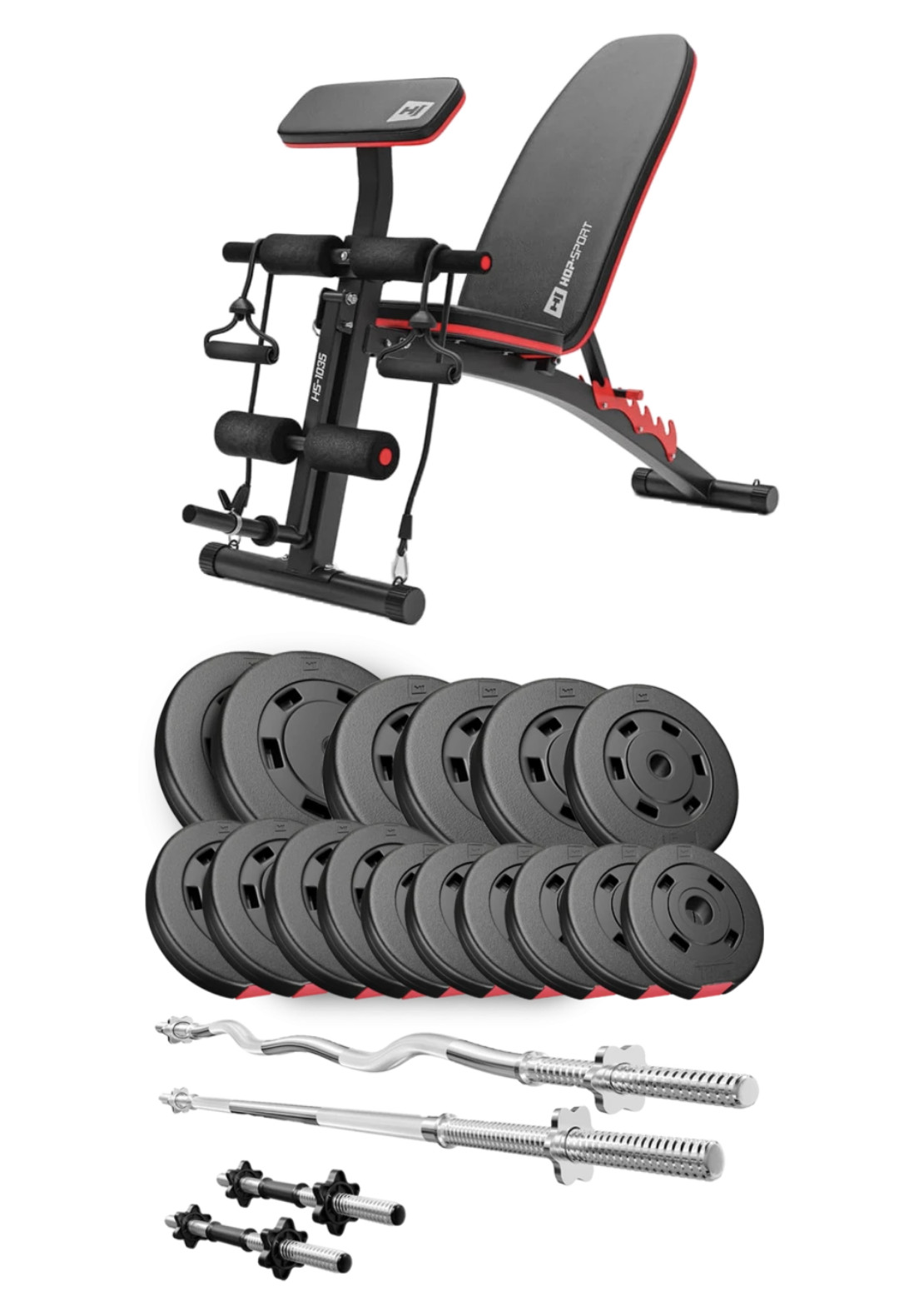 Набір Premium 75кг зі штангами і лавою HS-1035 - ідеально підібраний комплект з функціональною лавкою і найкращим поєднанням кількості і ваги дисків, щоб організувати вдома повноцінний спортзал для силових тренувань.