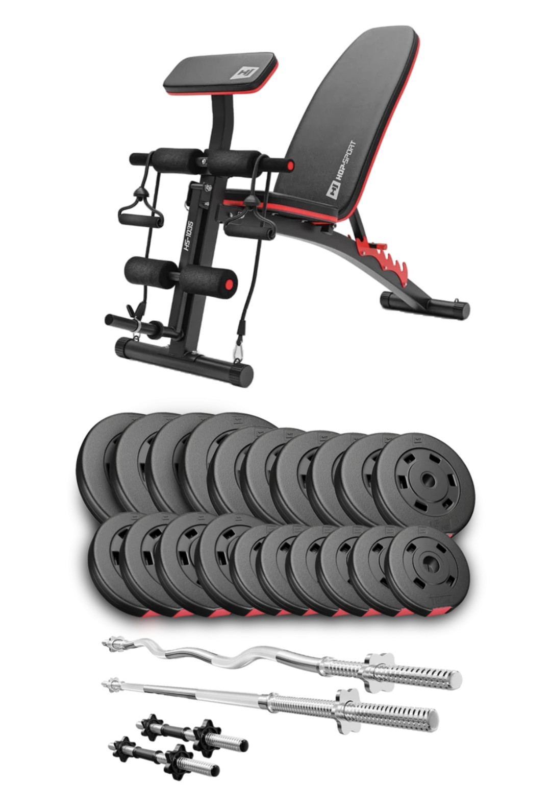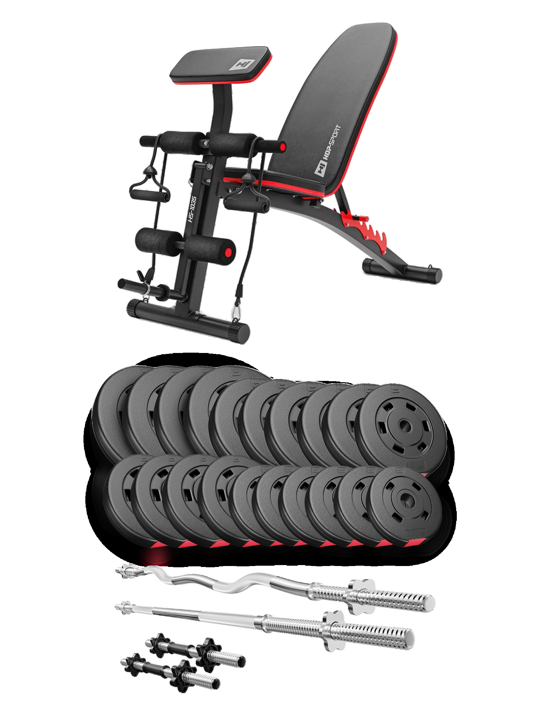 Набір Premium 105кг зі штангами і лавою HS-1035 - ідеально підібраний комплект з функціональною лавкою і найкращим поєднанням кількості і ваги дисків, щоб організувати вдома повноцінний спортзал для силових тренувань.