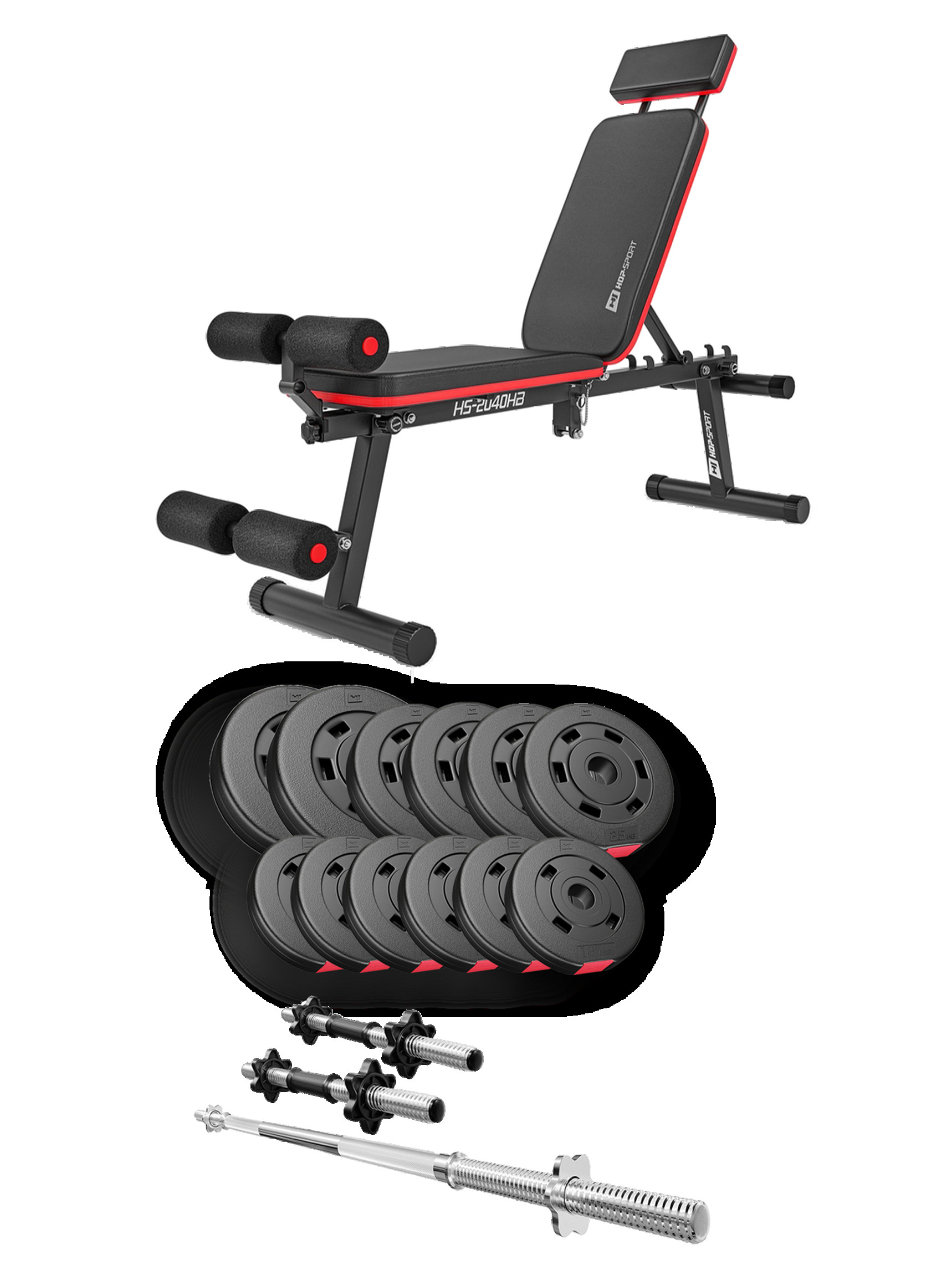 Набір Premium 38кг зі штангою і лавою HS-2040 HB - ідеально підібраний комплект з функціональною лавкою і найкращим поєднанням кількості і ваги дисків, щоб організувати вдома повноцінний спортзал для силових тренувань.
