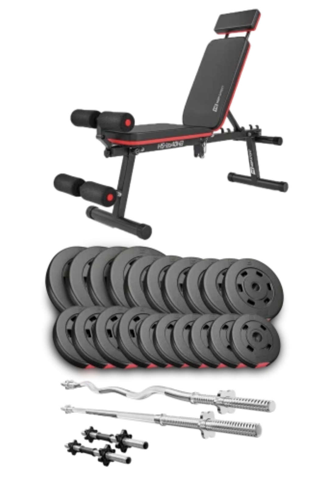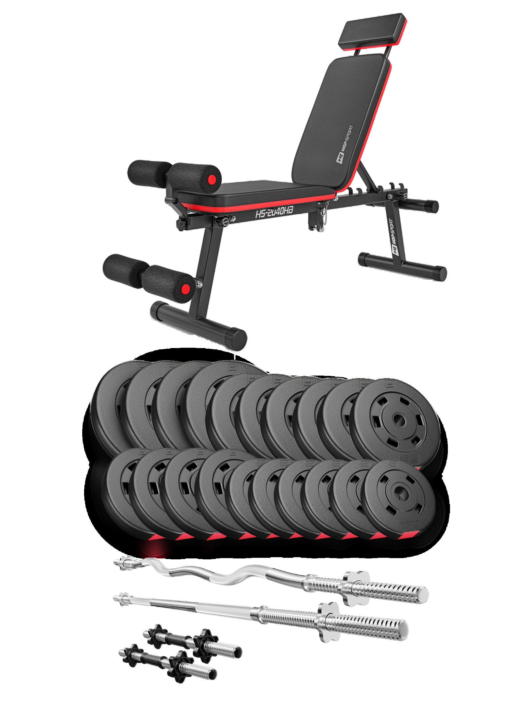 Набір Premium 105кг зі штангами і лавою HS-2040 HB - ідеально підібраний комплект з функціональною лавкою і найкращим поєднанням кількості і ваги дисків, щоб організувати вдома повноцінний спортзал для силових тренувань.