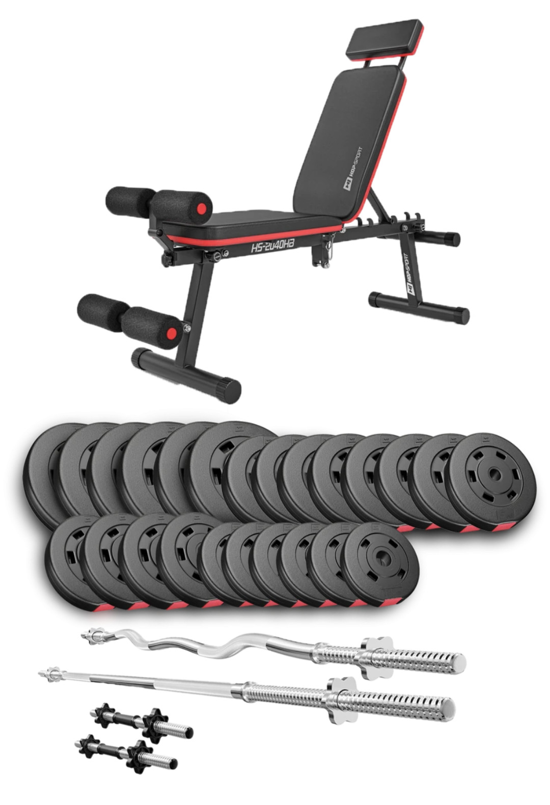 Набір Premium 135кг зі штангами і лавою HS-2040 HB - ідеально підібраний комплект з функціональною лавкою і найкращим поєднанням кількості і ваги дисків, щоб організувати вдома повноцінний спортзал для силових тренувань.