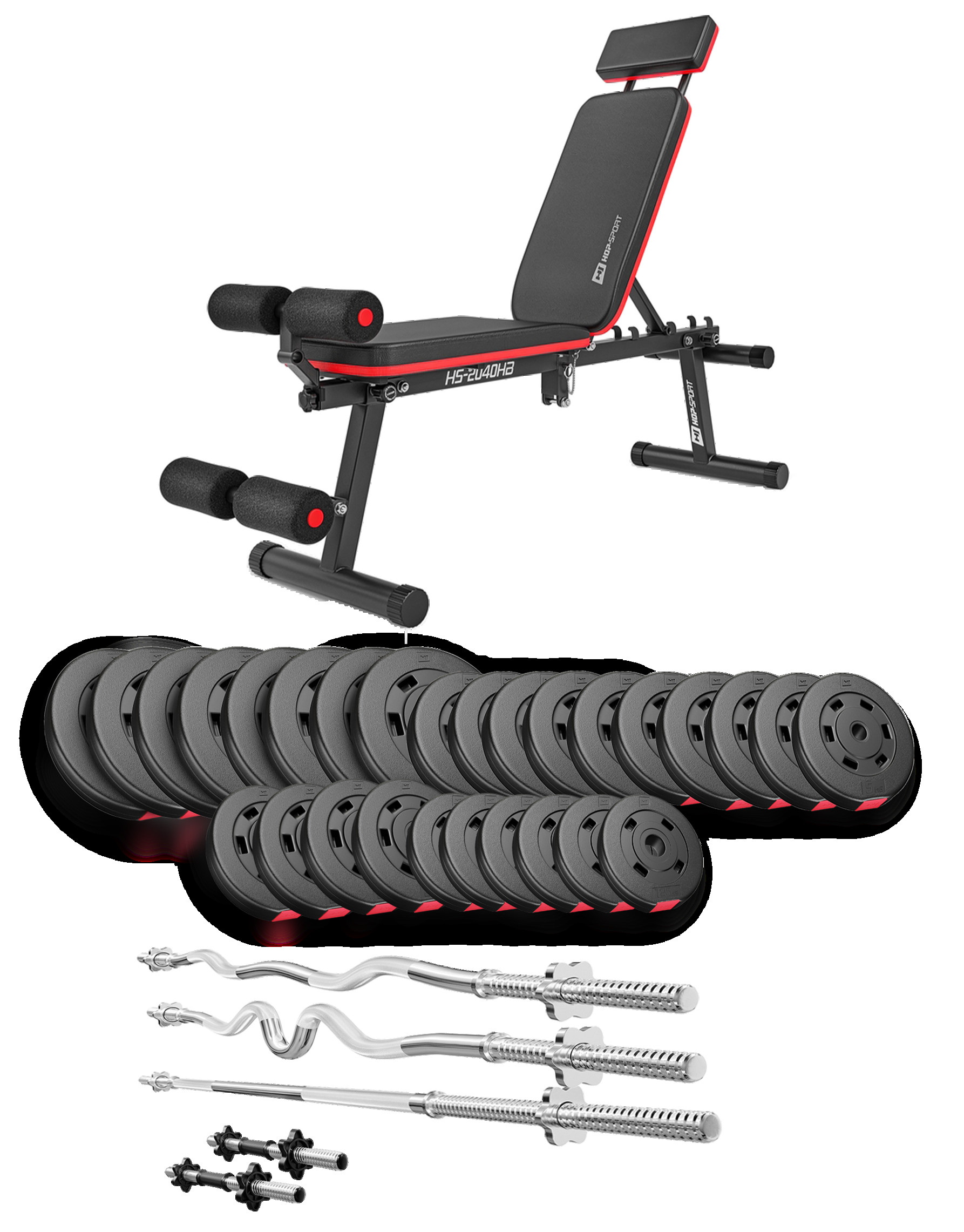 Набір Premium 173кг зі штангами і лавою HS-2040 HB - ідеально підібраний комплект з функціональною лавкою і найкращим поєднанням кількості і ваги дисків, щоб організувати вдома повноцінний спортзал для силових тренувань.
