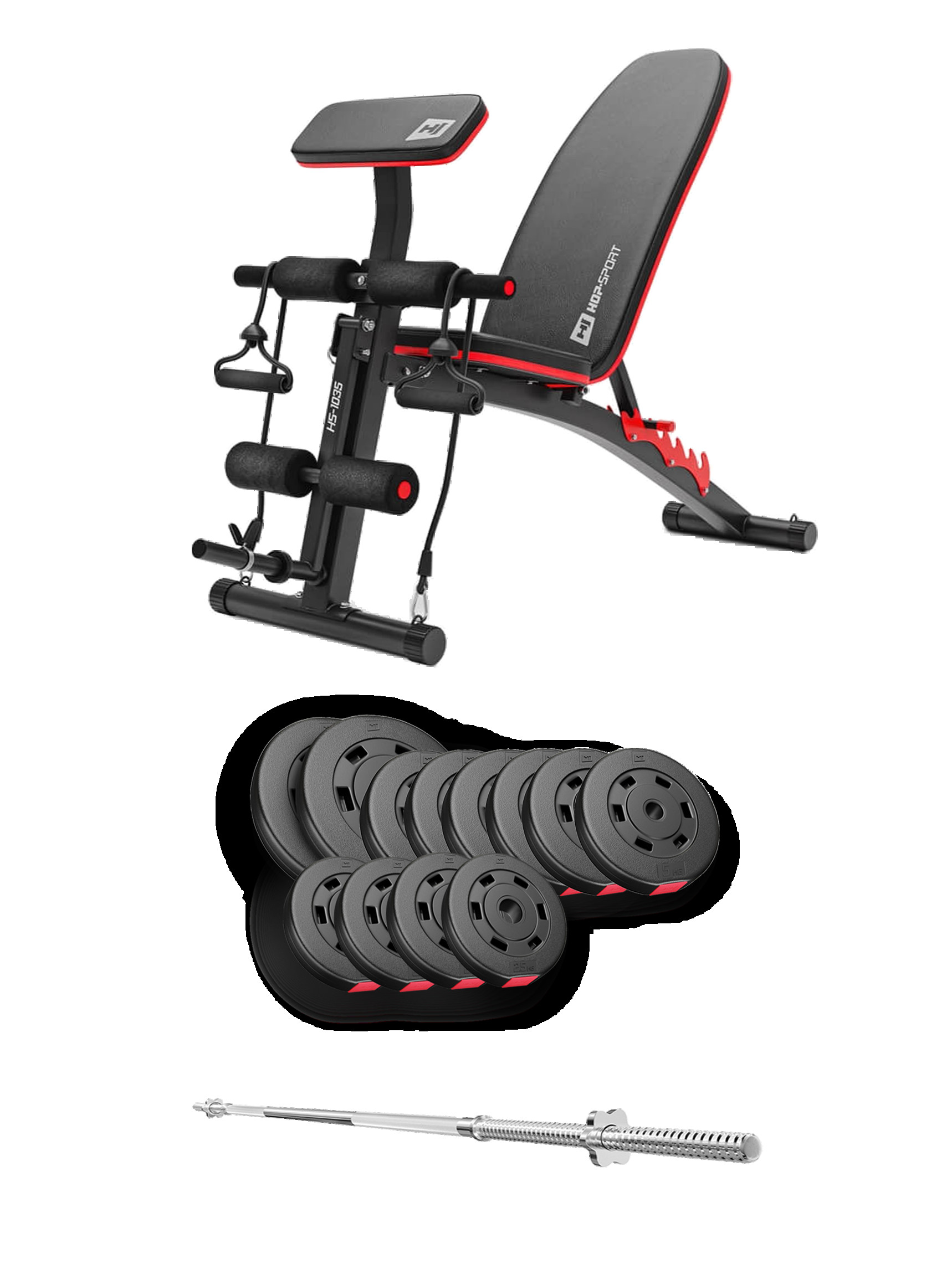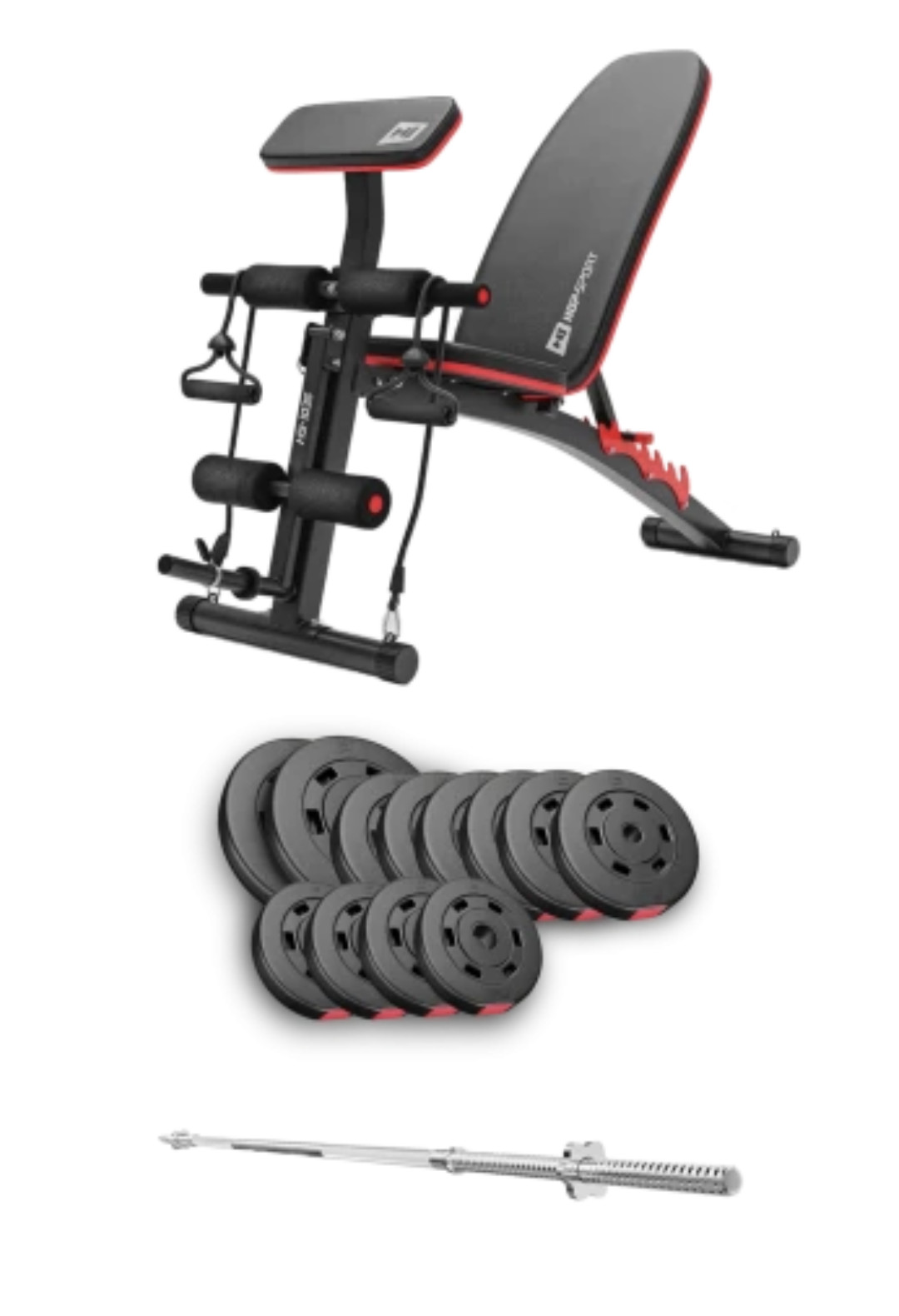 Набір Premium 69кг зі штангою і лавкою HS-1035 - ідеально підібраний комплект з функціональною лавкою і найкращим поєднанням кількості і ваги дисків, щоб організувати вдома повноцінний спортзал для силових тренувань. Завдяки ретельно підібраній конфігурації і високоякісним компонентам цей набір оцінять як початківці, так і досвідчені користувачі.