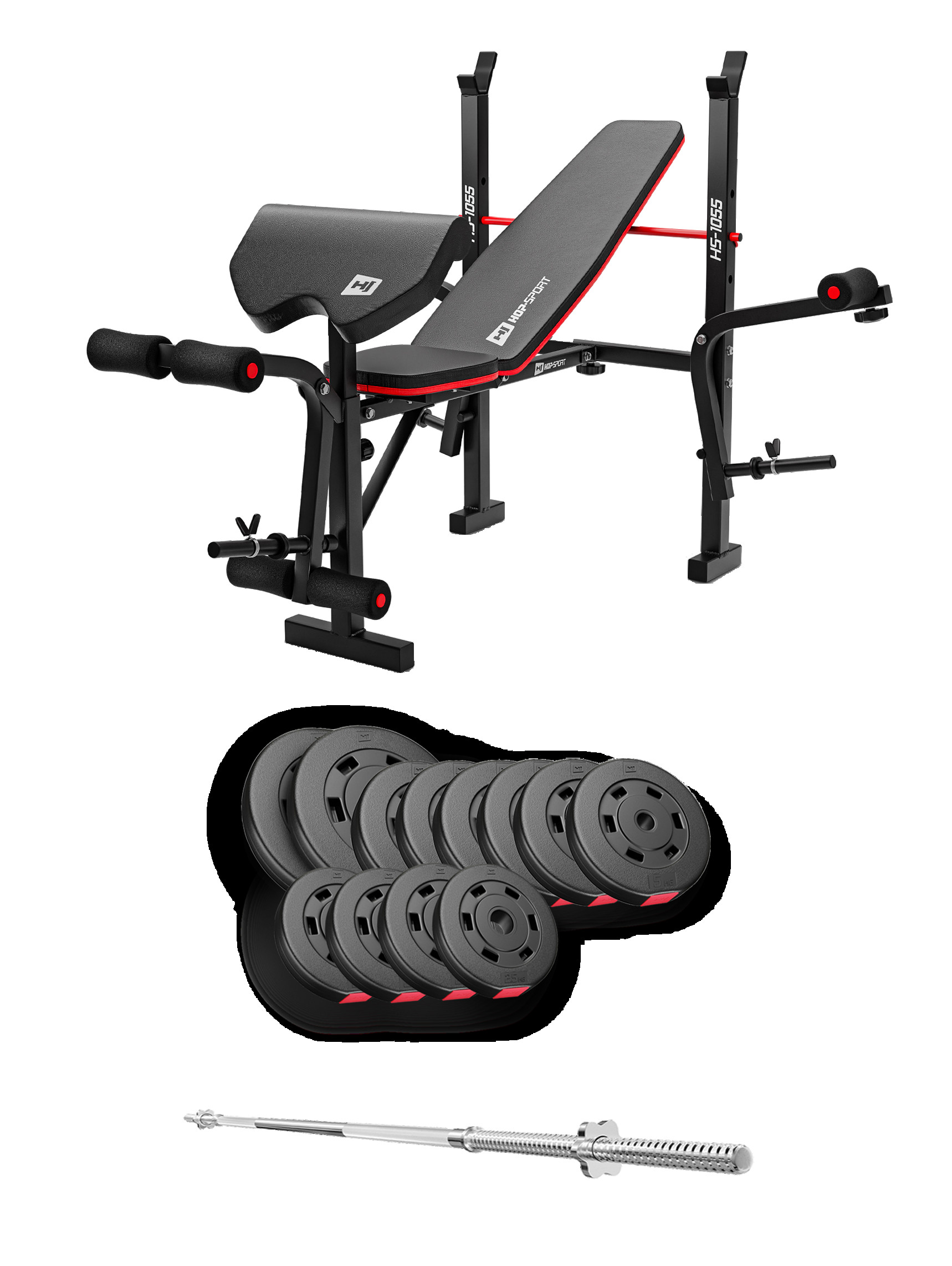 Набір Premium 69кг зі штангою і лавкою HS-1055 Pro - ідеально підібраний комплект з функціональною лавкою і найкращим поєднанням кількості і ваги дисків, щоб організувати вдома повноцінний спортзал для силових тренувань. Завдяки ретельно підібраній конфігурації і високоякісним компонентам цей набір оцінять як початківці, так і досвідчені користувачі.