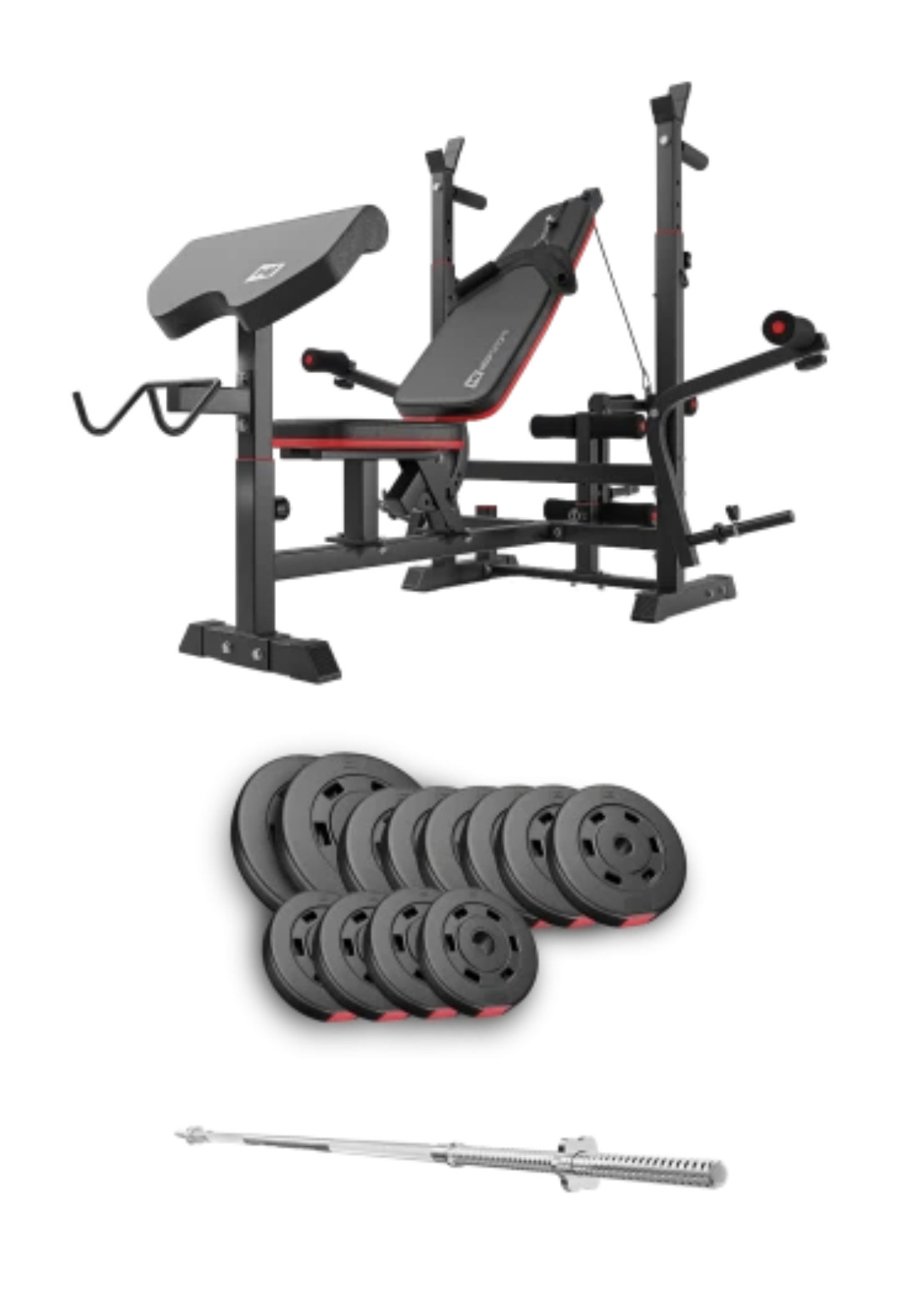 Набір Premium 69кг зі штангою і лавкою HS-1075 Pro - ідеально підібраний комплект з функціональною лавкою і найкращим поєднанням кількості і ваги дисків, щоб організувати вдома повноцінний спортзал для силових тренувань. Завдяки ретельно підібраній конфігурації і високоякісним компонентам цей набір оцінять як початківці, так і досвідчені користувачі.