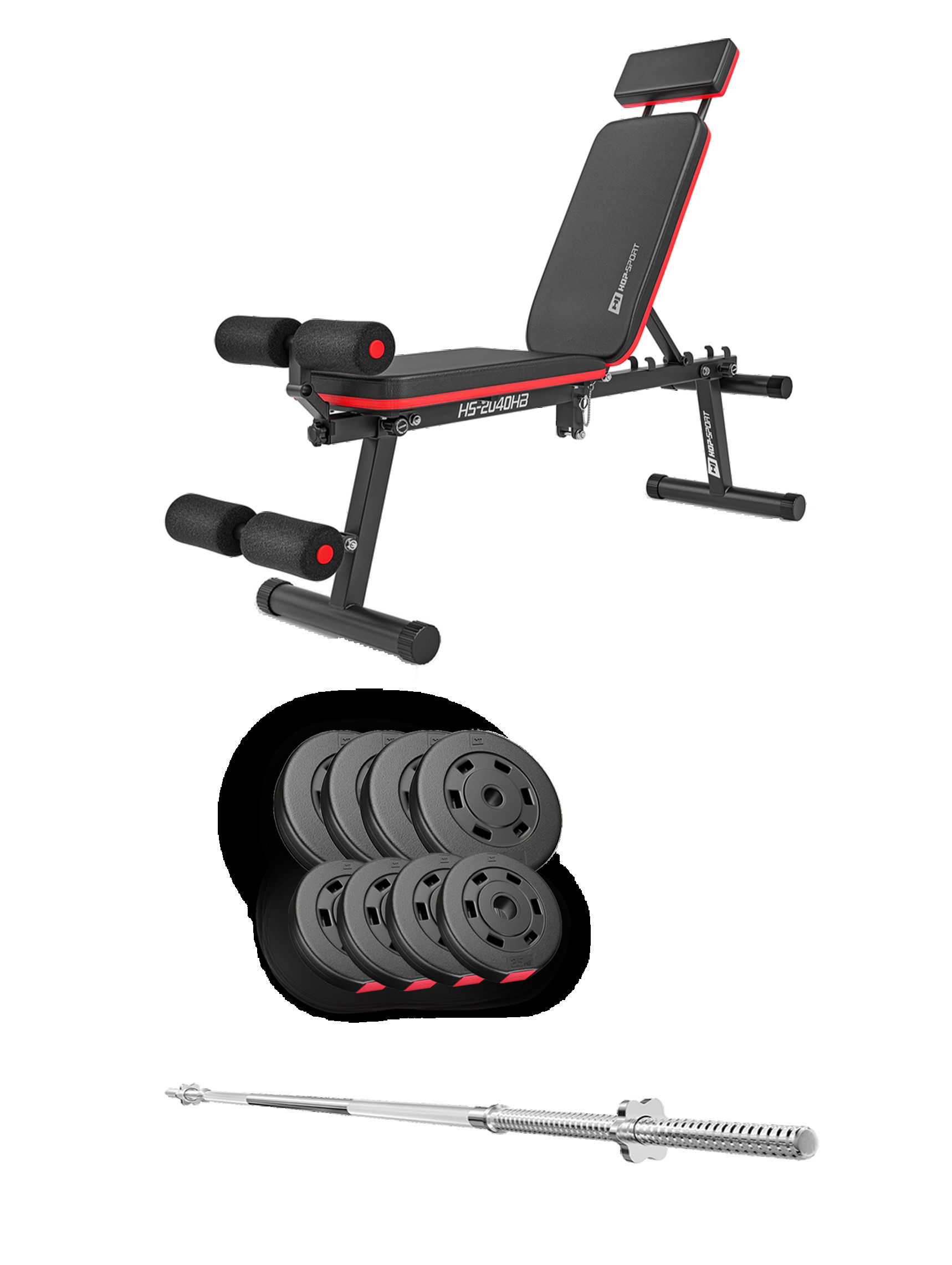 Набір Premium 39кг зі штангою і лавкою HS-2040 HB - ідеально підібраний комплект з функціональною лавкою і найкращим поєднанням кількості і ваги дисків, щоб організувати вдома повноцінний спортзал для силових тренувань. Завдяки ретельно підібраній конфігурації і високоякісним компонентам цей набір оцінять як початківці, так і досвідчені користувачі.