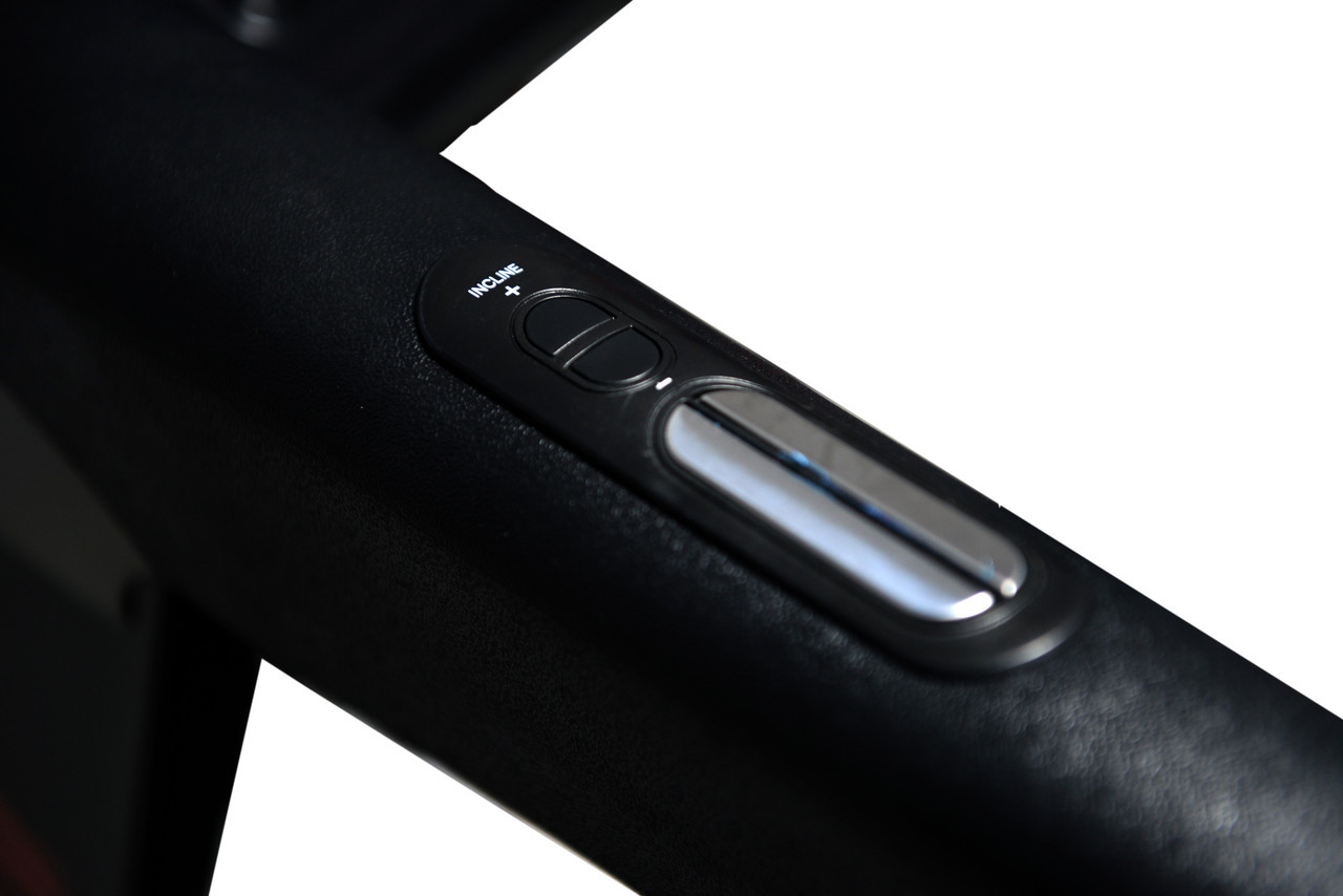 - Швидкість бігу від 1 до 18 км/год можна змінювати одним натисканням на кнопки швидкого перемикання швидкості на консолі тренажера або на кнопки регулювання швидкості на поручнях бігової доріжки.
