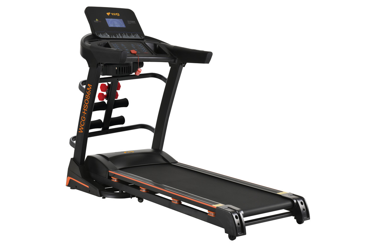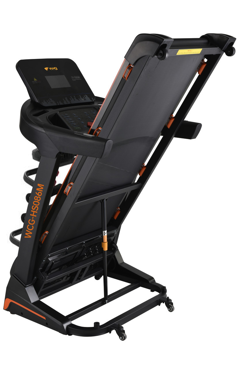 Інтенсивні бігові тренування не виходячи з дому?Немає проблем з електричною біговою доріжкою WCG-HS086MЦя модель має широкий діапазон швидкостей, що в поєднанні з 12 програмами тренувань дозволяє налаштувати ефективний режим вправ у домашніх умовах.Міцна конструкція, автоматичний кут нахилу, навчальні програми та потужний двигун - головні переваги цієї моделі.