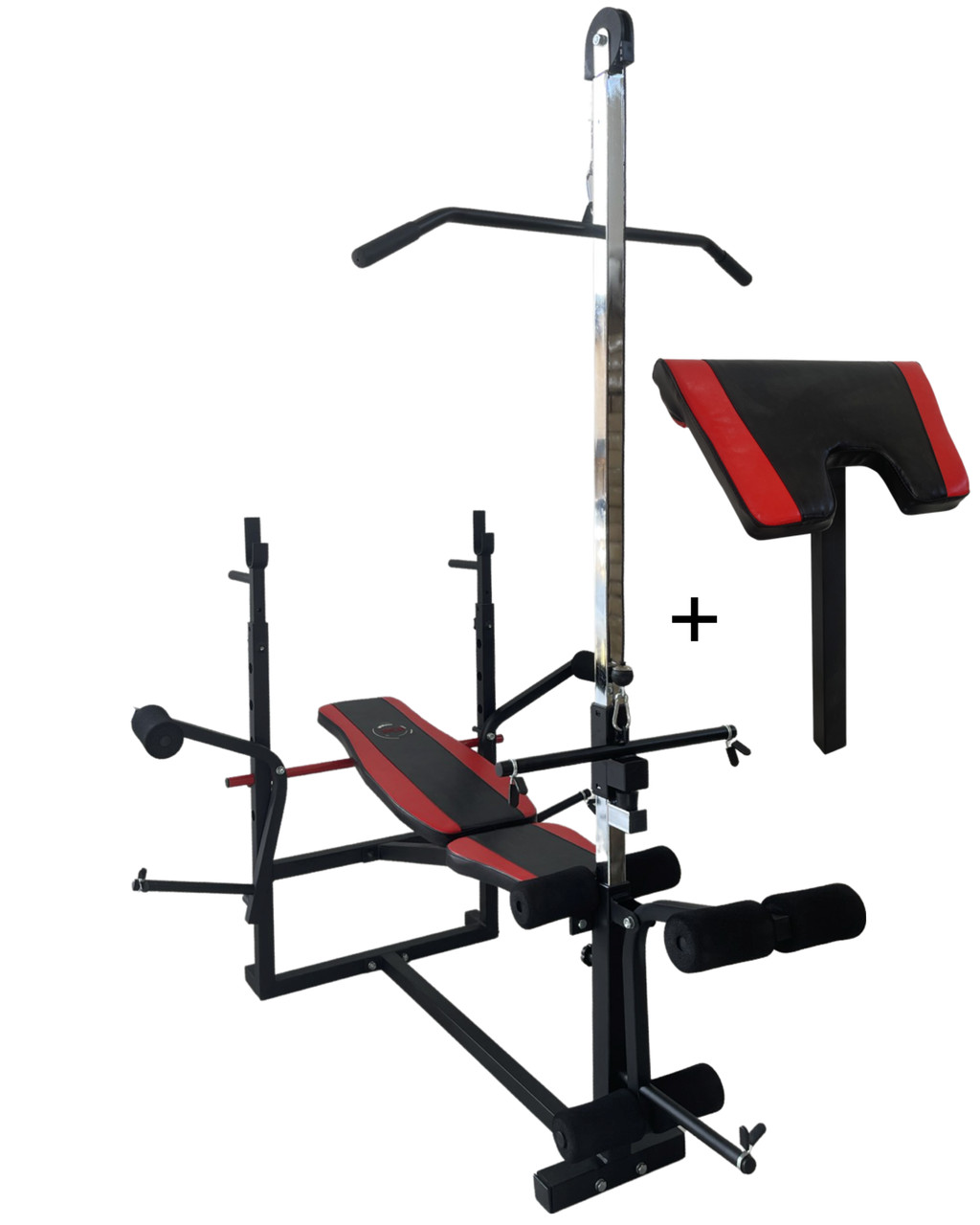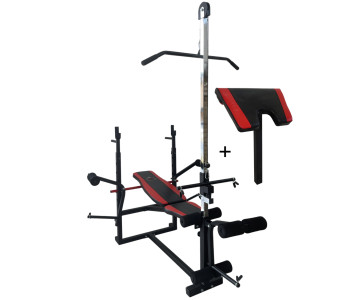 - Вага лави: 27кг + тяга 6 кг(Висота тяги172 см/Довжина тяги з лавкою: 209 см)