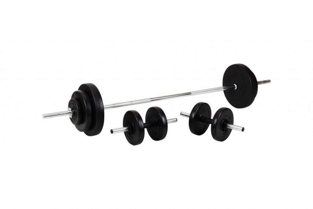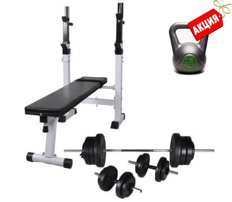 Цей універсальний набір дозволяє чергувати тренування зі штангою та гантелями, рівномірно опрацьовуючи всі основні групи м’язів.