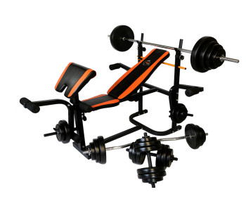 Лавка Для Жима універсальна WCG 0020 з Тягою та партою Скотта + Набір штанга та гантелі на 98 кг