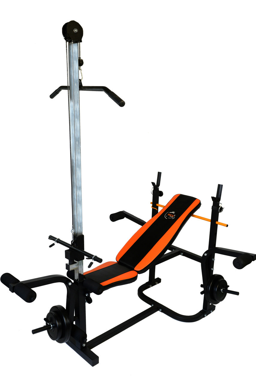 Для виконання силових вправ у комплекті поставляється тяга зверху . Як навантаження використовуються вагові диски з посадковим діаметром 25 мм і 31 мм (диски купуються окремо). Стійка для верхньої тяги дозволяє тренувати практично всі групи м'язів верхньої частини тіла! Тренажер верхня тяга має конструкцію, яка була спеціально розроблена для різних вправ, пов'язаних із опрацюванням рук та груп м'язів верхньої частини тіла з можливістю збільшувати навантаження за допомогою додаткових вагових блоків! Сильні м'язи спини і рук відіграють дуже важливу роль у будь-якій фізичній активності, пов'язаній з різними силовими вправами.