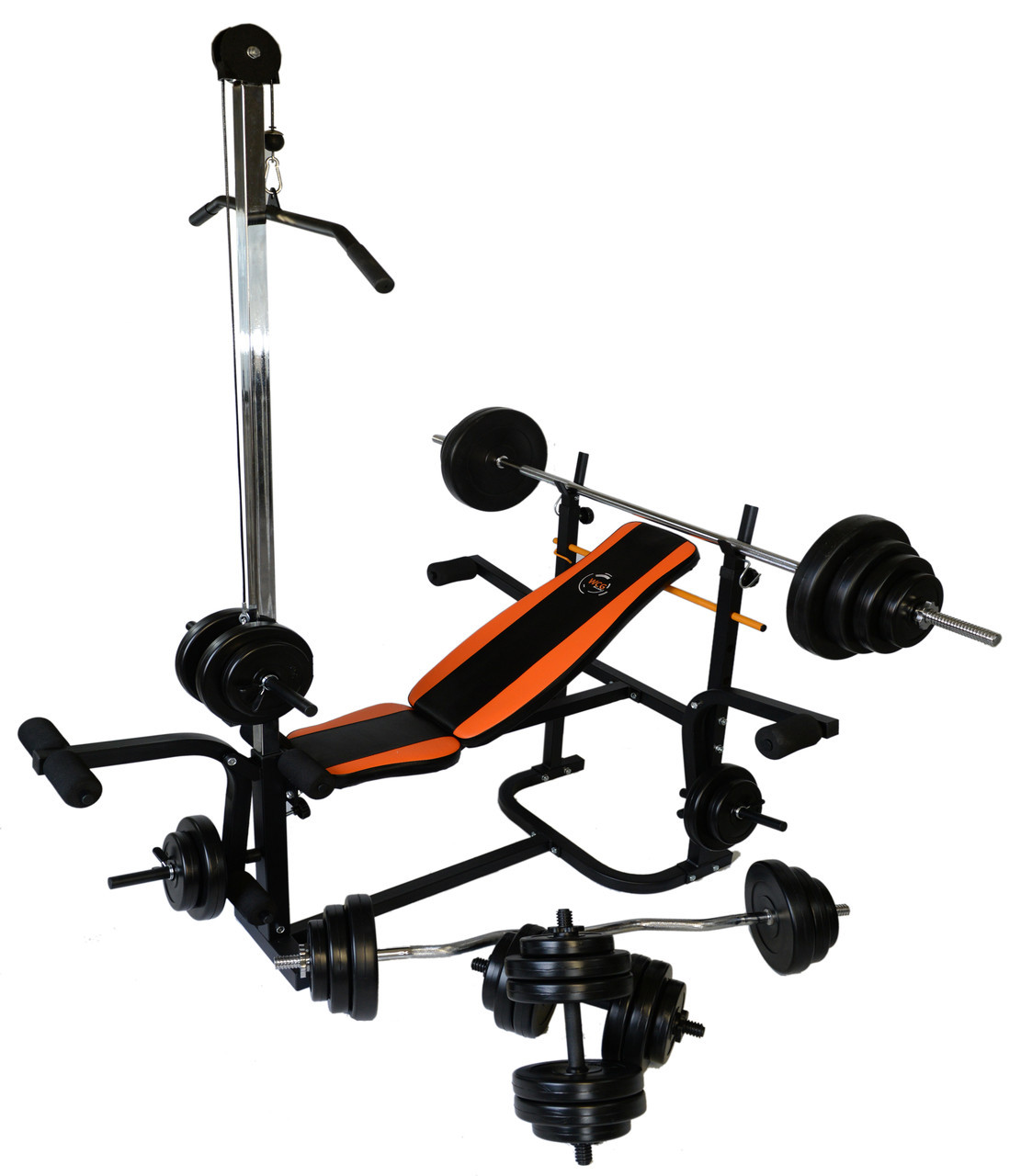 лава WCG 0020 + тяга з приставкою Скотта ця спортивна лава, оснащена важелями баттерфляй; для розвитку м'язів грудей і спини і блоком для тренування ніг, є повноцінним багатофункціональним силовим тренажером для дому складної конструкції.