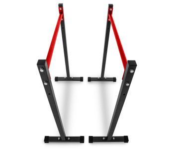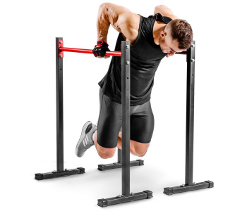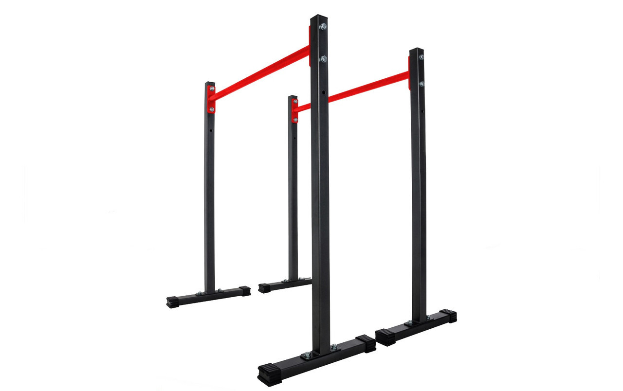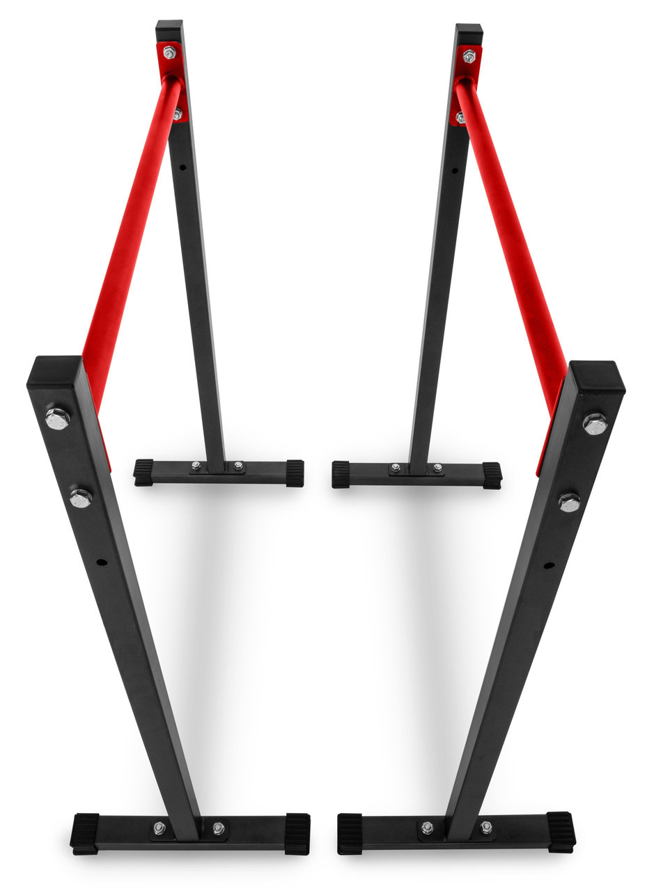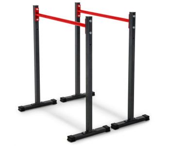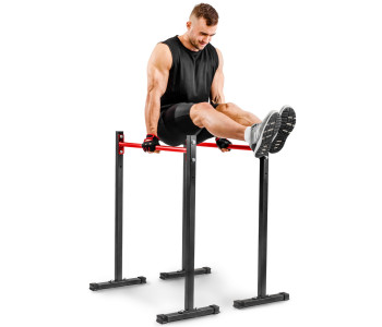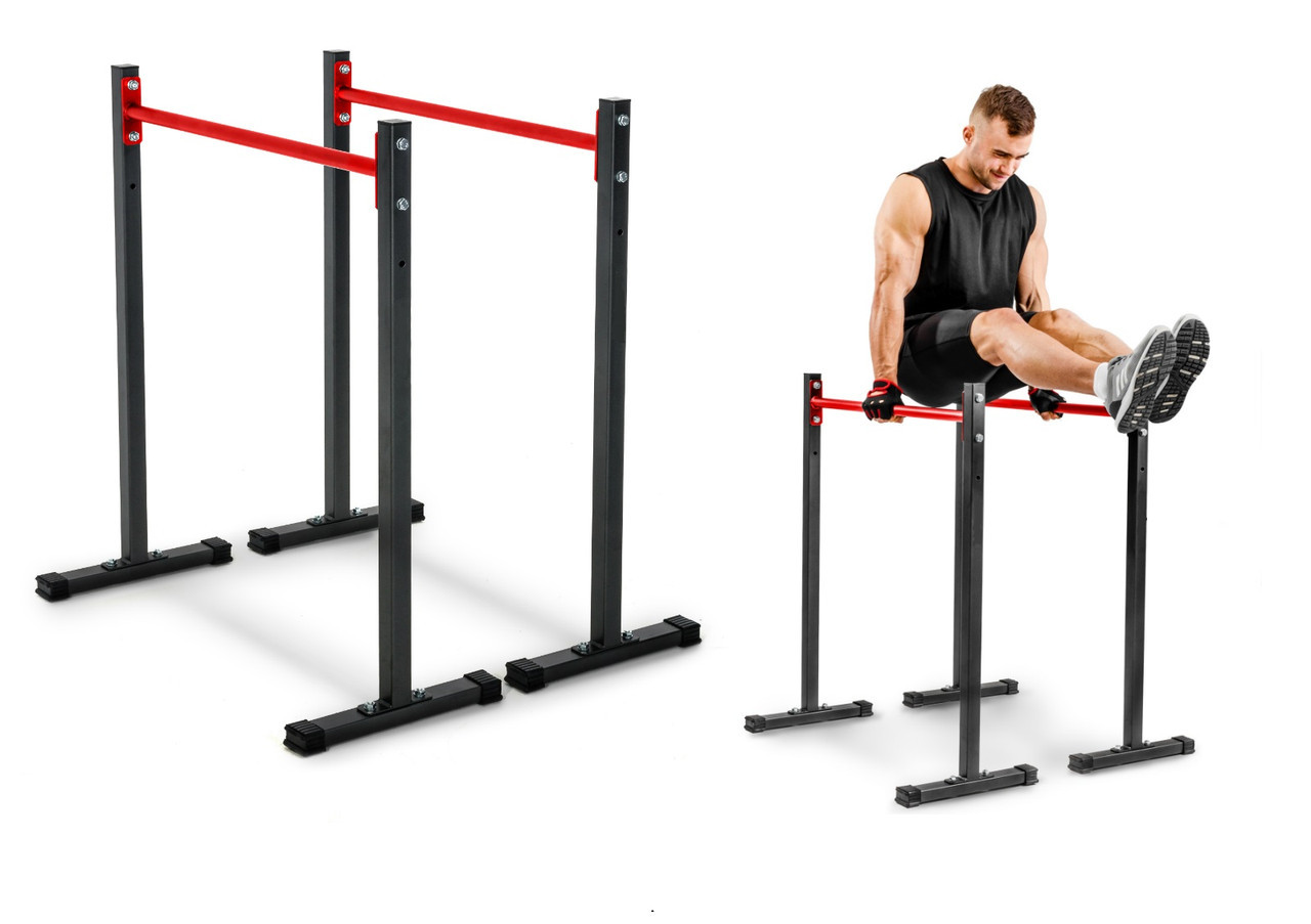 Просте та надзвичайно функціональне обладнання для домашніх силових тренувань. Стаціонарні бруси дозволять вам ефективно зміцнити м'язи живота, спини та рук, виконуючи різні вправи, такі як віджимання чи підйом ніг. Перевагою брусів є можливість легко регулювати висоту стійок і стабільна стійка до корозії конструкція. З нашими брусами ви тренуєтеся, не турбуючись про стан вашої підлоги. Виріб оснащений пластиковими захисними ніжками, які ефективно захистять поверхню від подряпин і запобігають руху обладнання під час тренування.