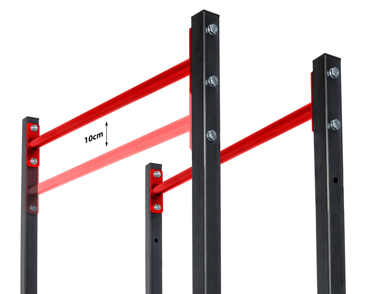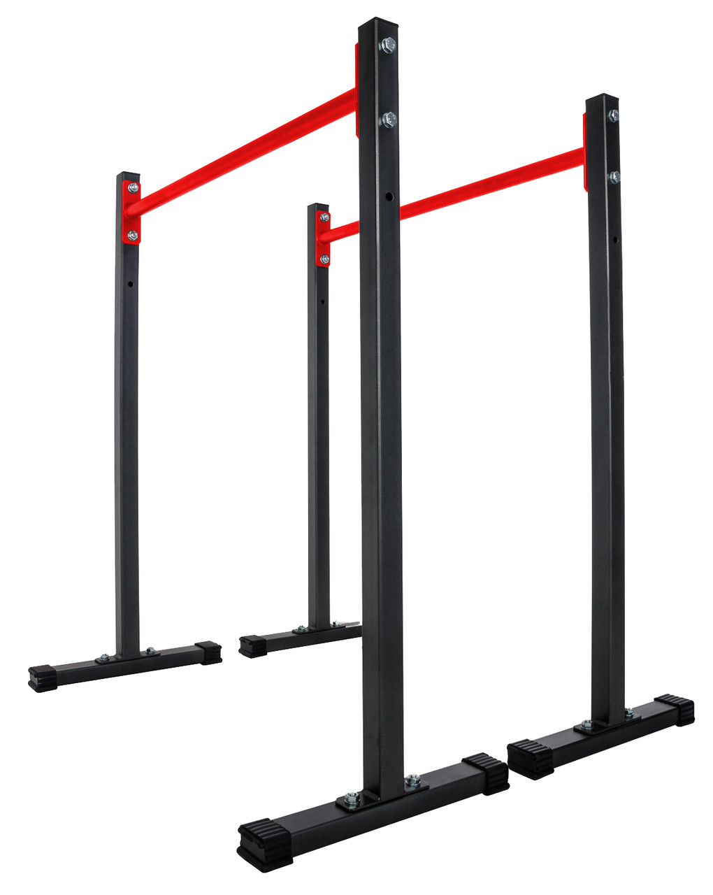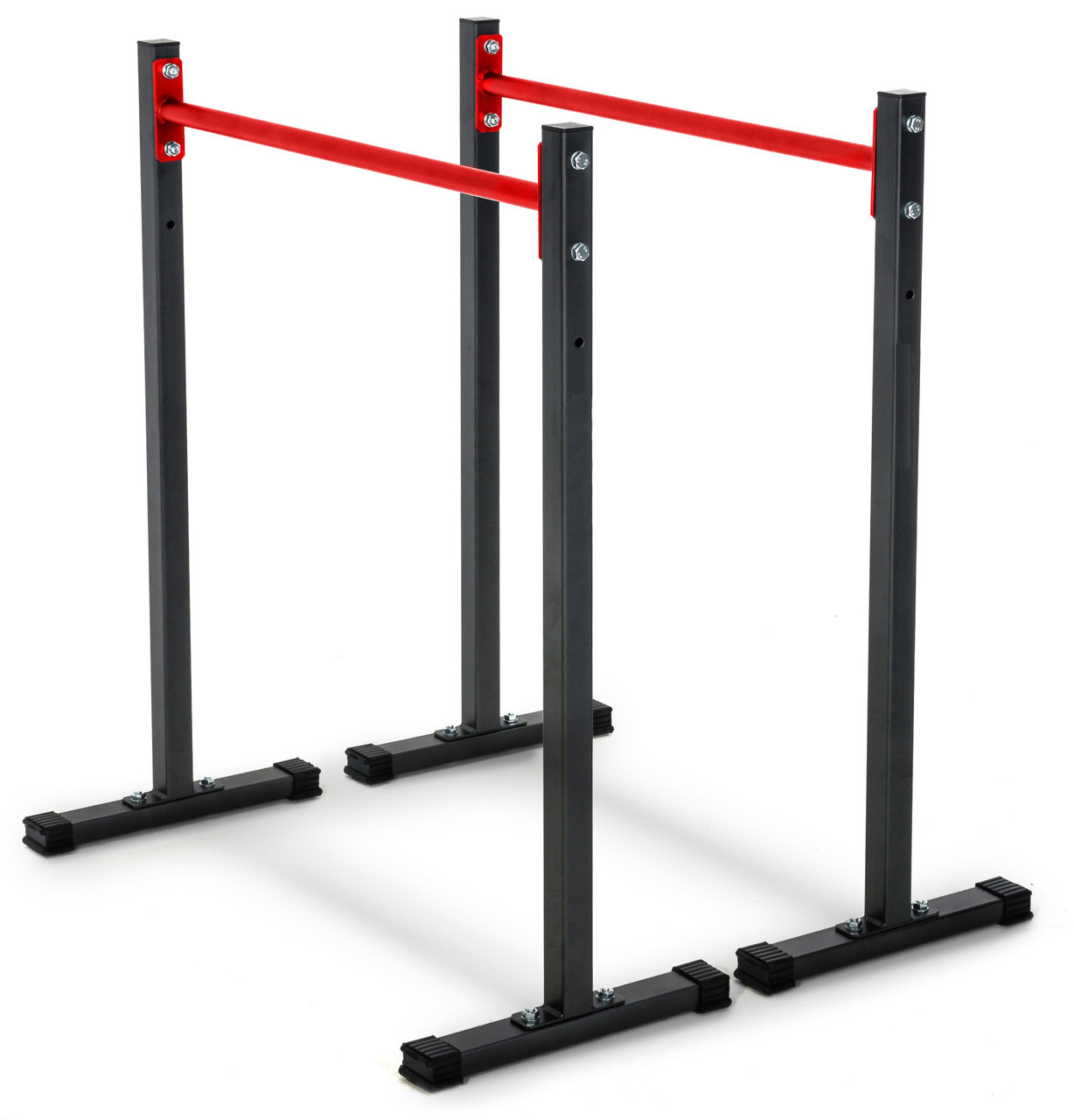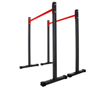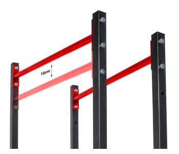 Просте та надзвичайно функціональне обладнання для домашніх силових тренувань. Стаціонарні бруси дозволять вам ефективно зміцнити м'язи живота, спини та рук, виконуючи різні вправи, такі як віджимання чи підйом ніг. Перевагою брусів є можливість легко регулювати висоту стійок і стабільна стійка до корозії конструкція. З нашими брусами ви тренуєтеся, не турбуючись про стан вашої підлоги. Виріб оснащений пластиковими захисними ніжками, які ефективно захистять поверхню від подряпин і запобігають руху обладнання під час тренування.