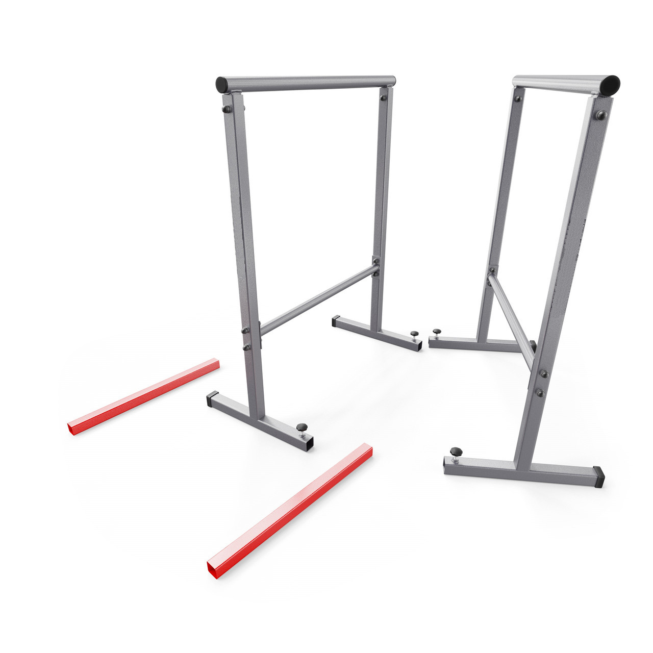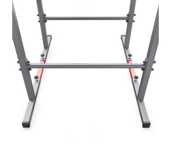 Пристрій має масивні, широко розставлені ніжки, які забезпечують стабільність і комфорт тренування.Після підключення з додатковими червоними профілями, обладнання набуває максимальної стійкості до гойдання та удару.nbsp ;