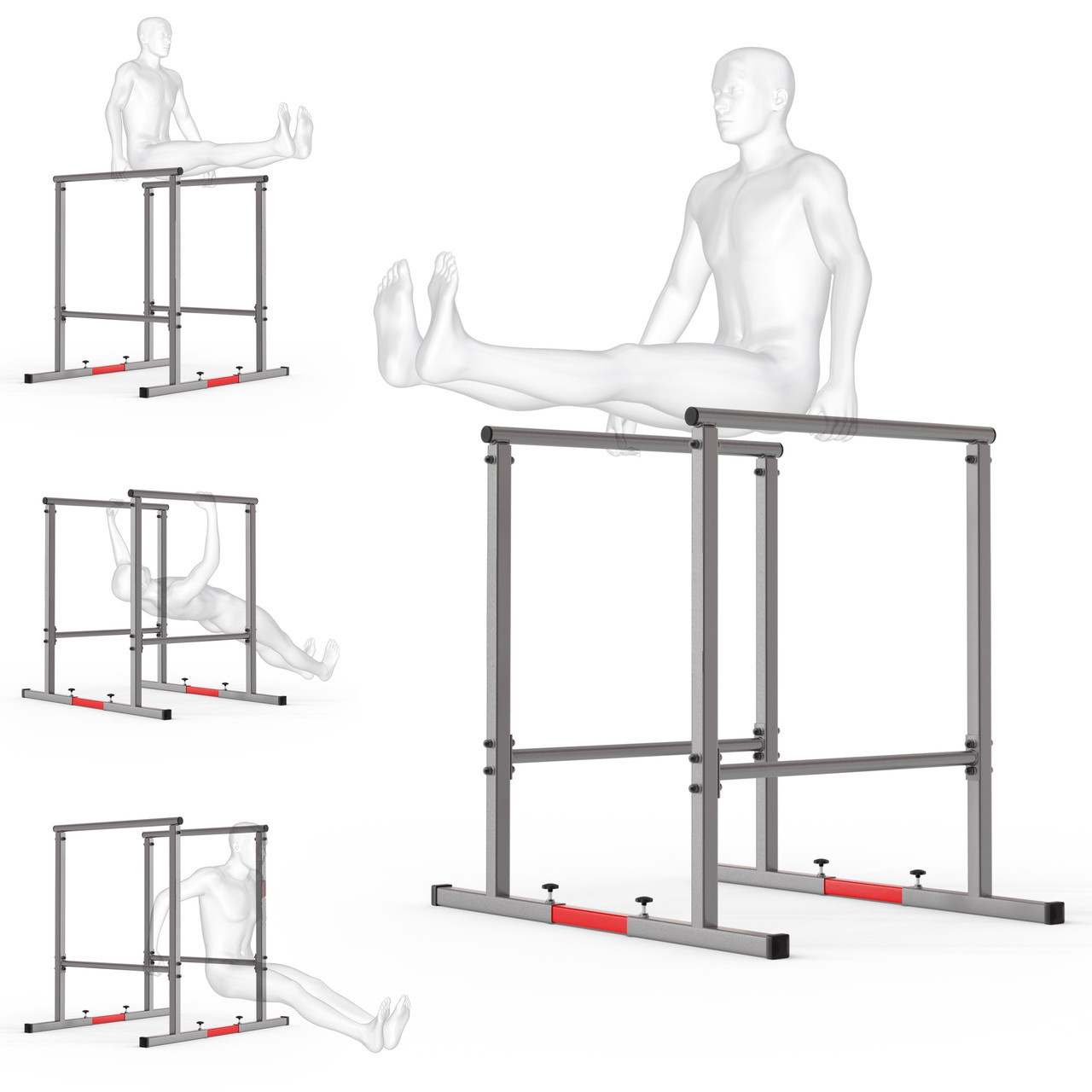 Високі поручні - відмінний інструмент для роботи на плечах, плечах, спині та м'язах живота. Ви можете робити всілякі віджимання: шведський, римський, L-sit і багато інших. Побудуйте фігуру, що поєднує силове навчання з елементами перехресної та гімнастики!