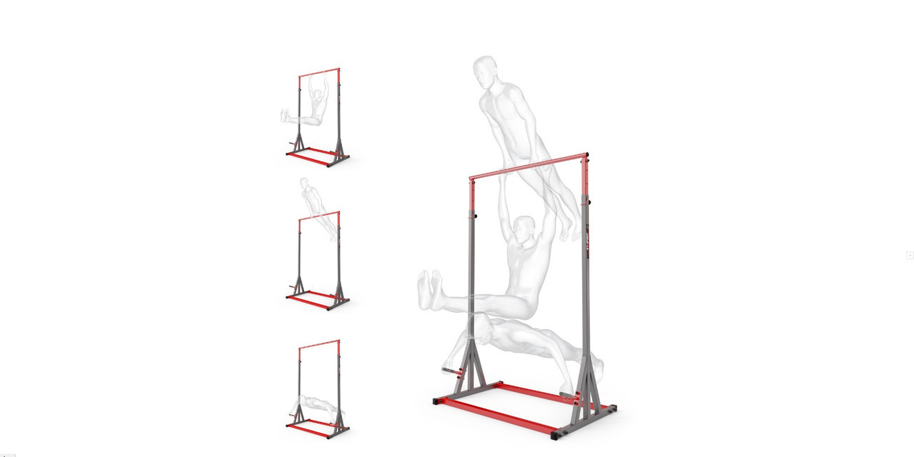 Рівень поперечини може бути адаптований до висоти користувача або типу виконуваної вправи.Мінімальна висота становить 175 см, а максимальна висота - 255 см.