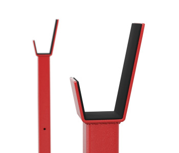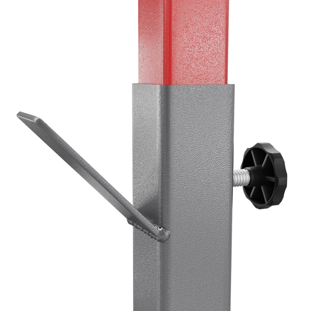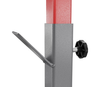 Регулювання на основі колеса затиску та фіксуючої скоби з високоміцної сталі забезпечує 100% стійкість всієї конструкції. Гумові накладки на вилці стійок знижують рівень шуму та захищають їх від пошкодження.