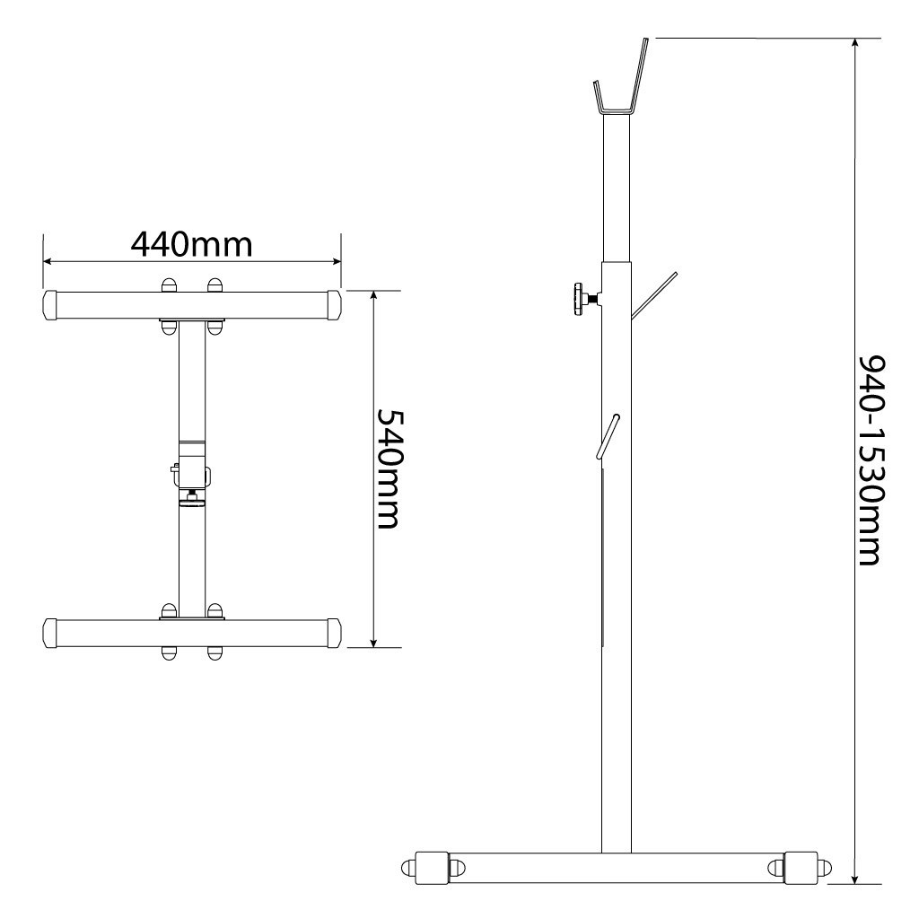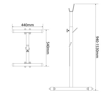 - Габарити в робочому стані (ДхШхВ): 440x540x940-1530 мм (габарити однієї стійки)