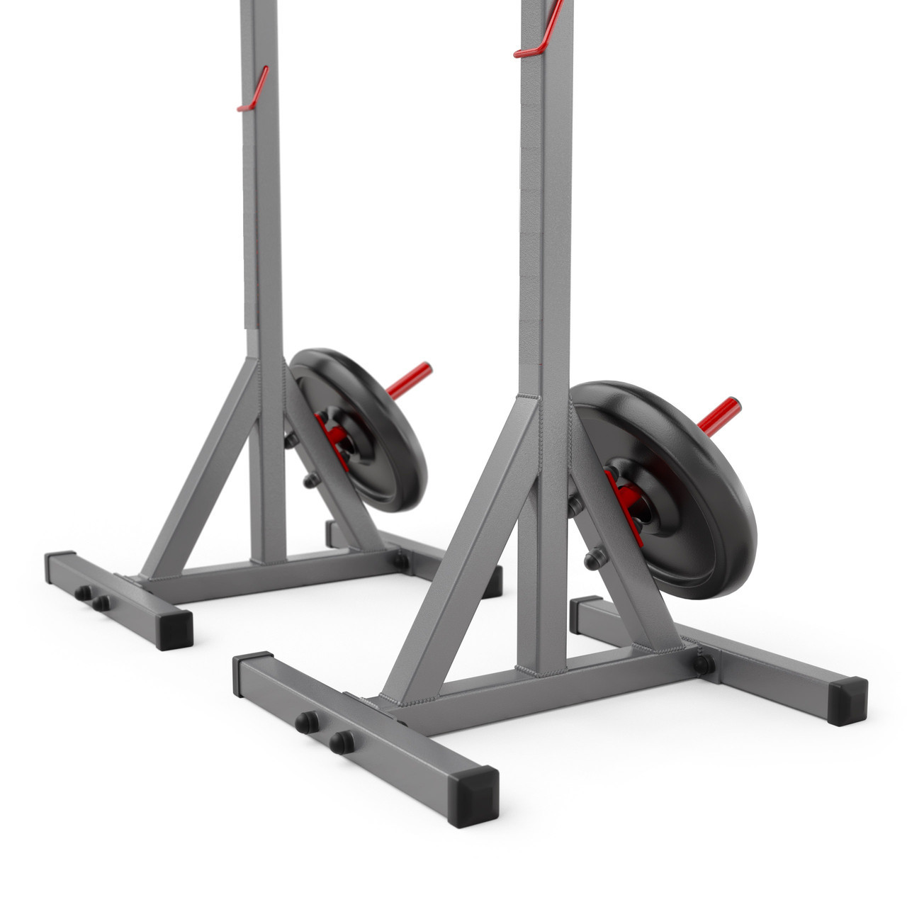 Стійки під штангу WCG PRO RG-200 підходять для виконання широкого спектру вправ зі штангою. Дві стійки регулюються по вертикалі в положеннях. Також у конструкції передбачені фіксатори для виконання вправ зі штангою в нижній зоні.