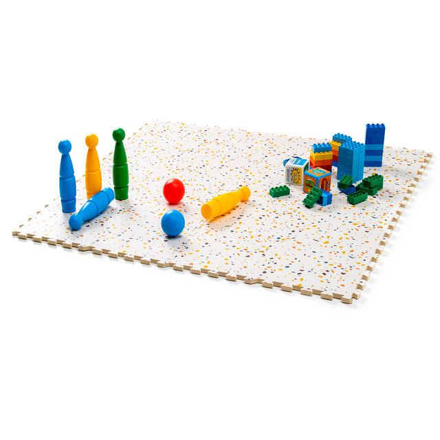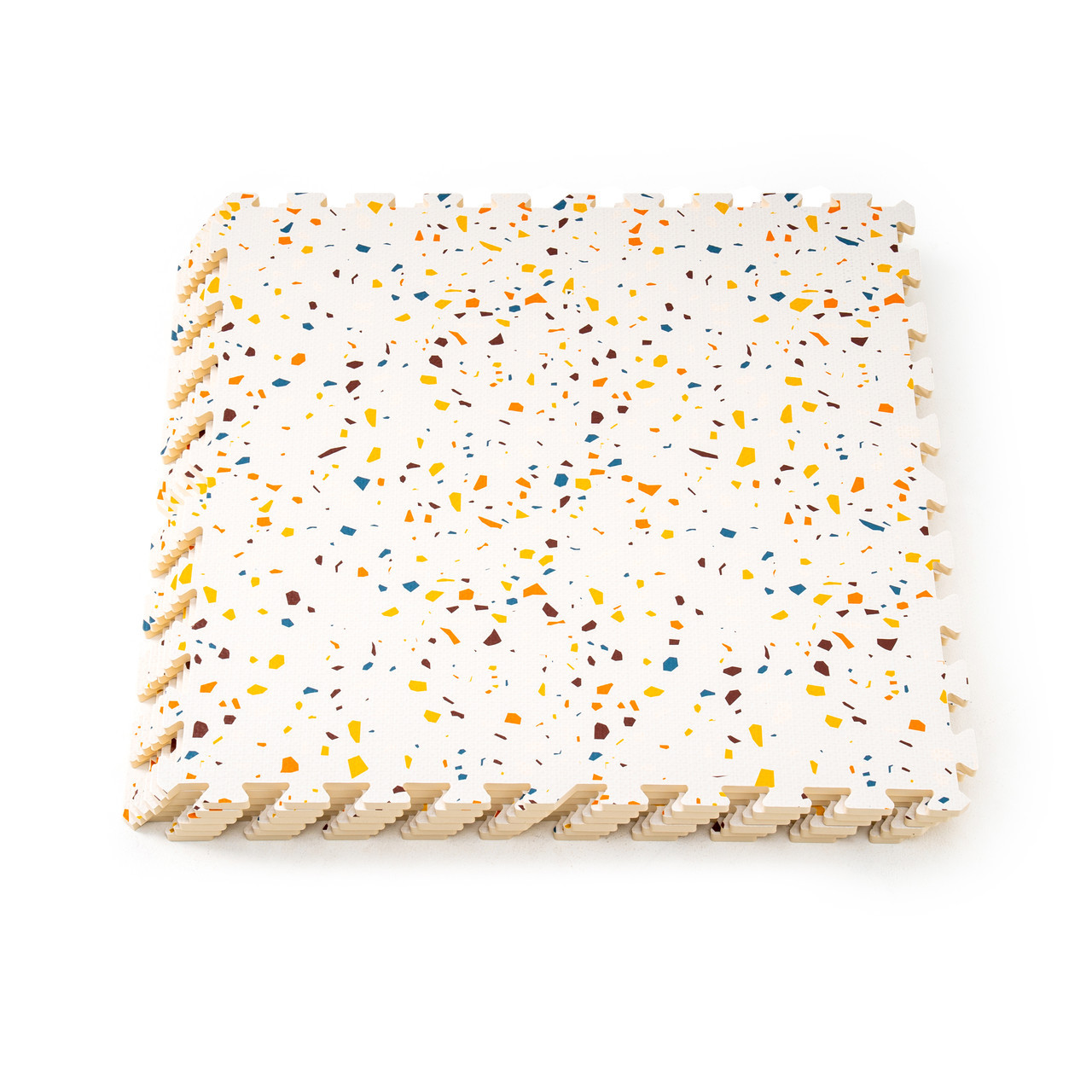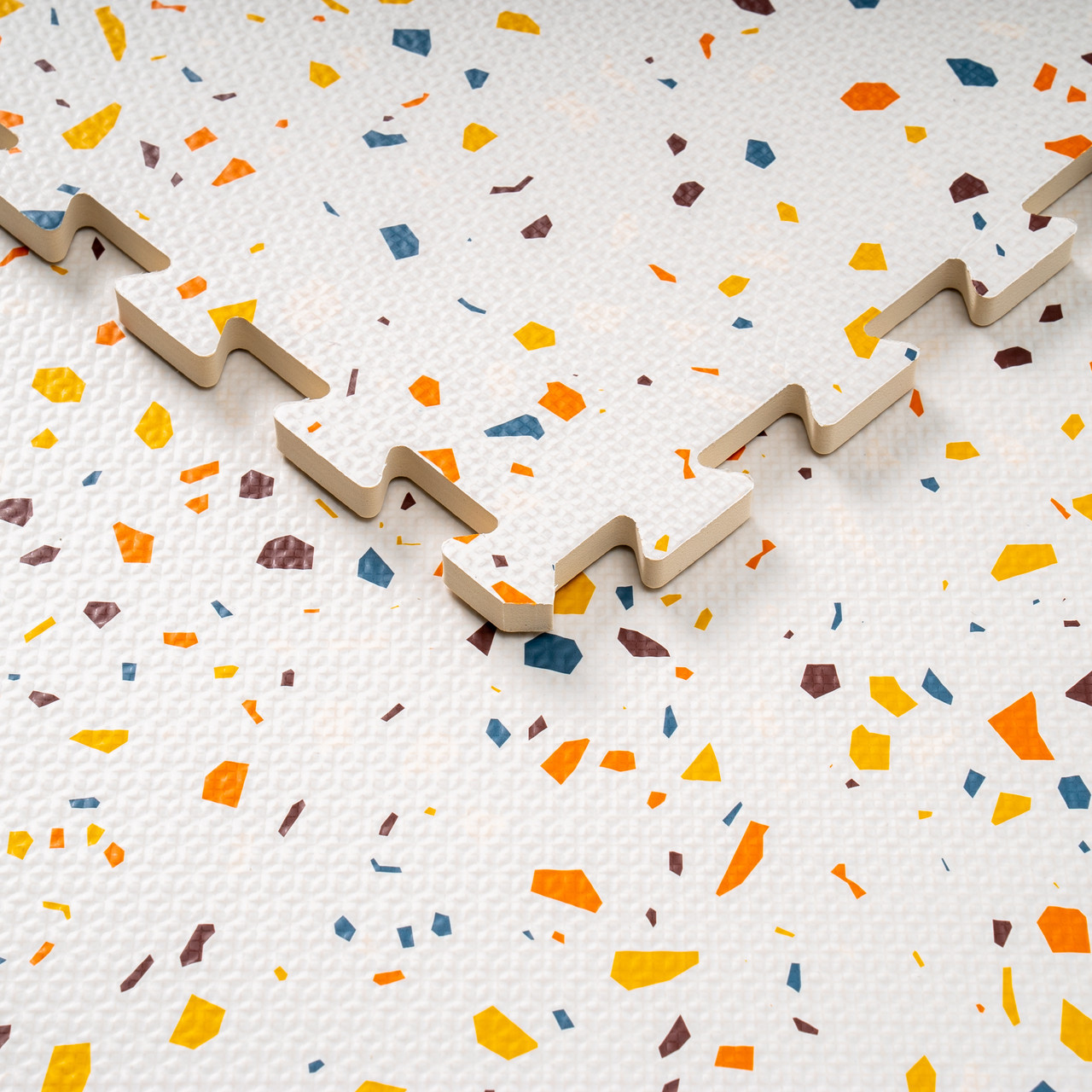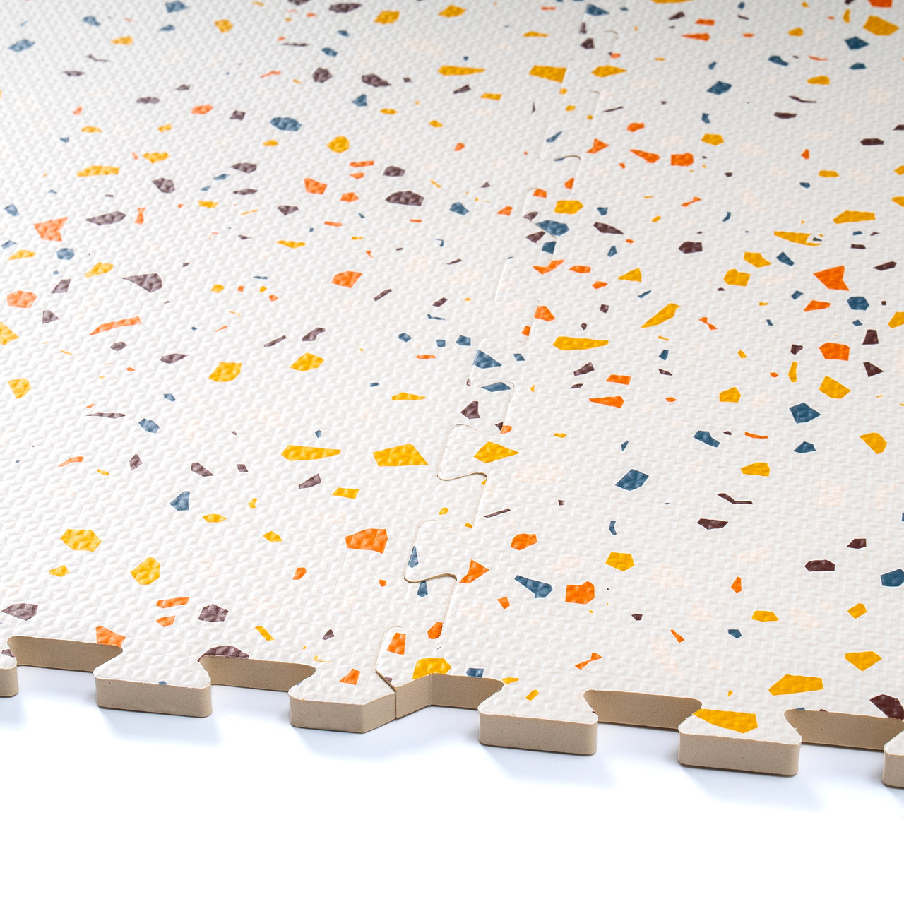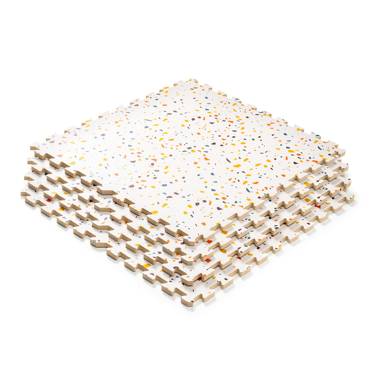 Мат-пазл WCG тераццо 60х60х1, 2cm! Наші міцні, неслизькі килимки-пазли захищають вашу підлогу від подряпин, потертостей та вм'ятин, особливо при використанні в домашньому спортзалі, гаражі або дитячому майданчику. Також ідеально підходить для батутів, гойдалок, садових басейнів та багато іншого.