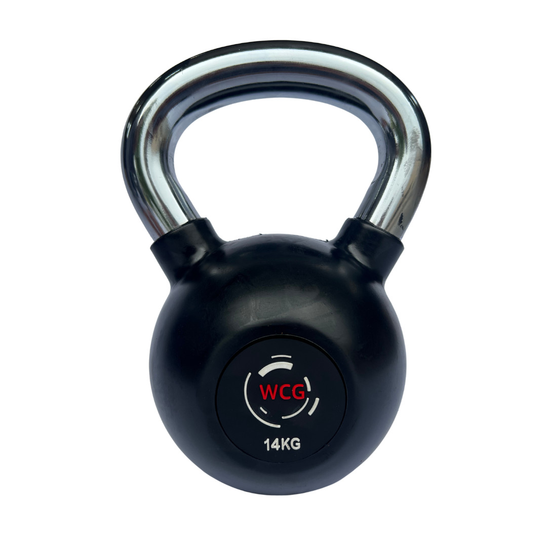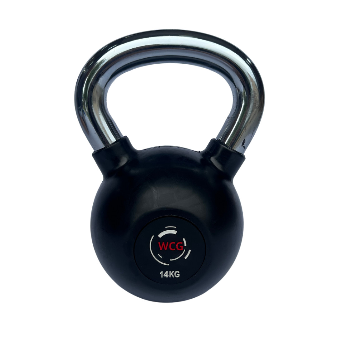 Обгумована гиря з хромованою ручкою WCG 14 кг спеціально розроблена для функціональних тренувань всього тіла, тому дозволить вам одночасно зміцнити серце, розвинути силу і наростити м'язи.