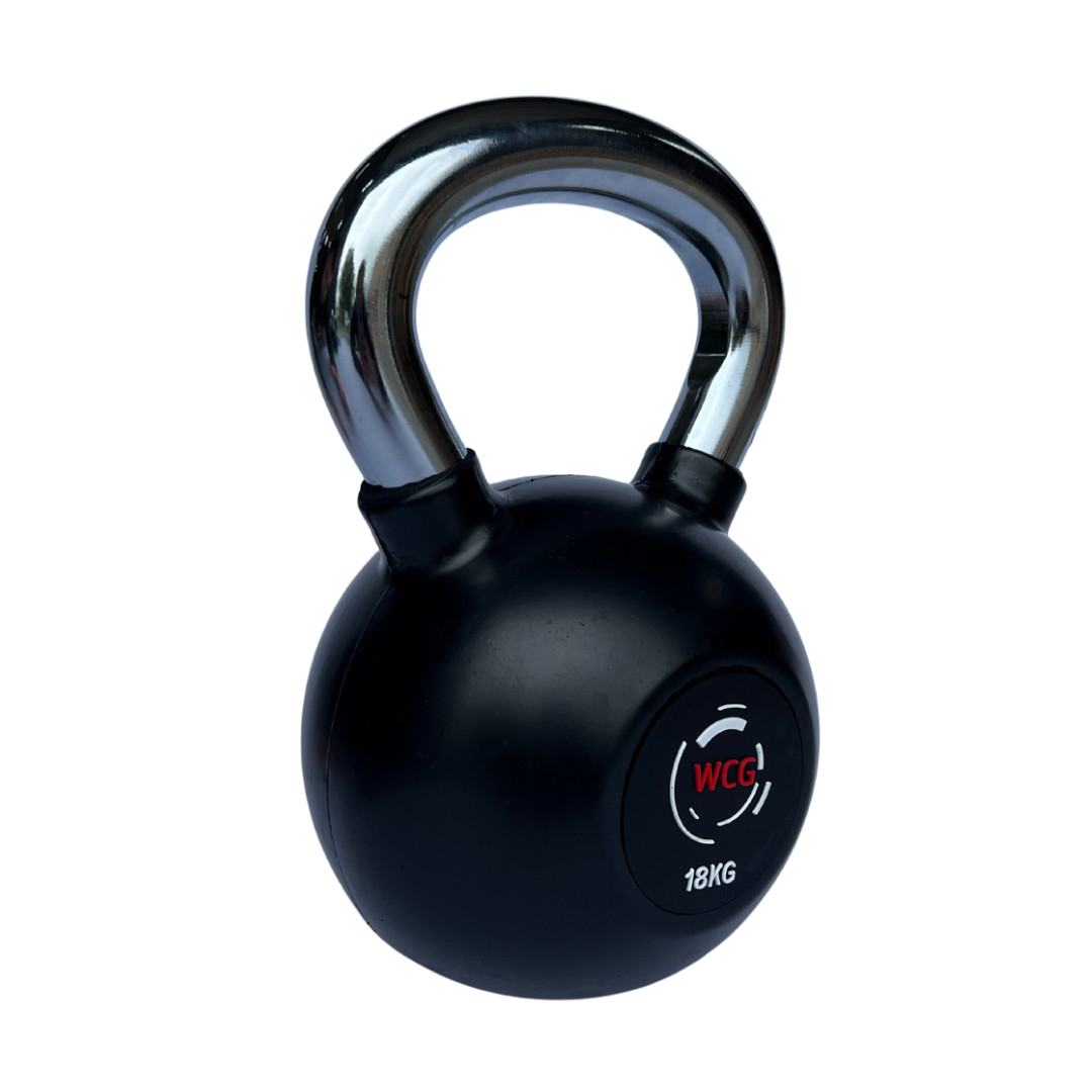 Обгумована гиря з хромованою ручкою WCG 18 кг спеціально розроблена для функціональних тренувань всього тіла, тому дозволить вам одночасно зміцнити серце, розвинути силу і наростити м'язи.