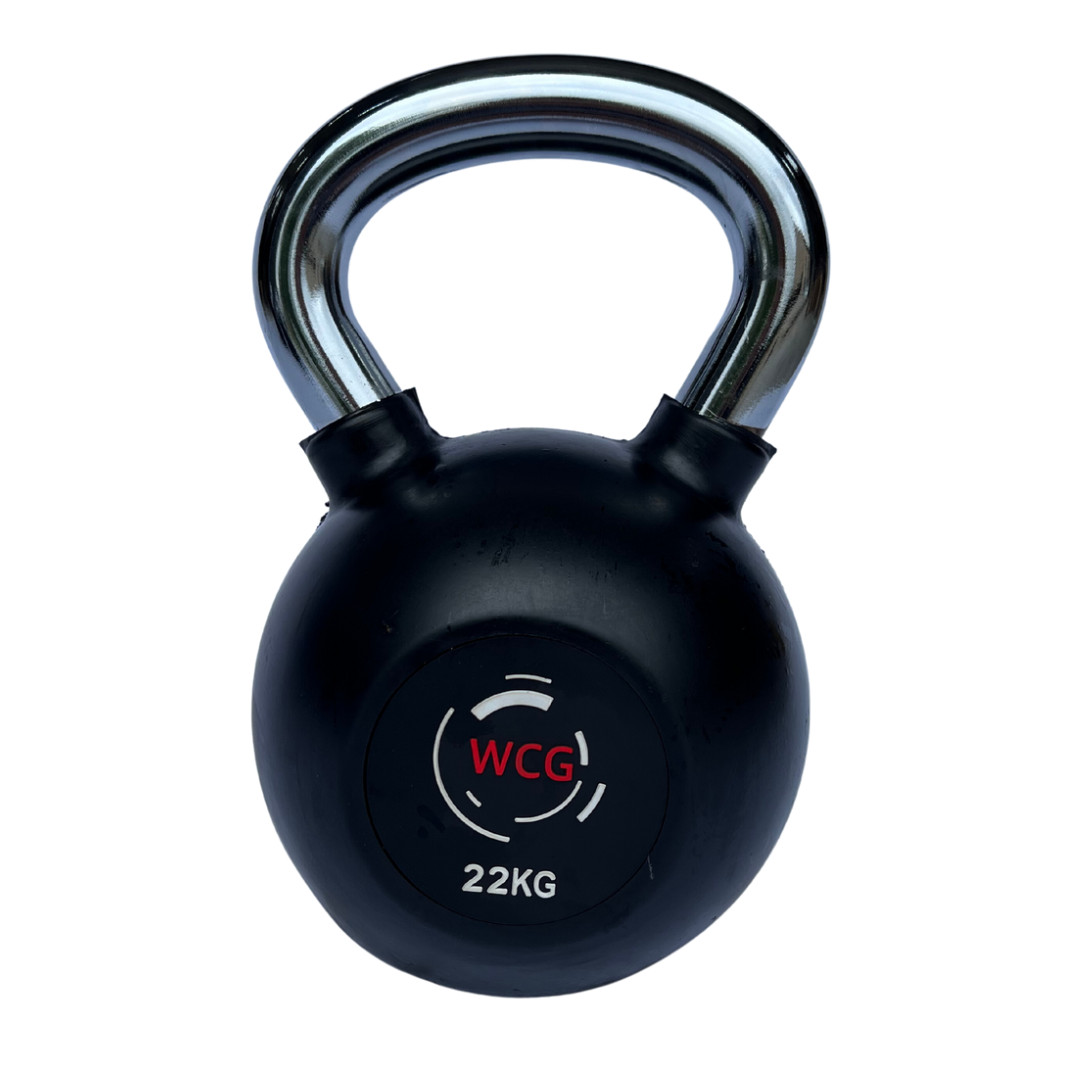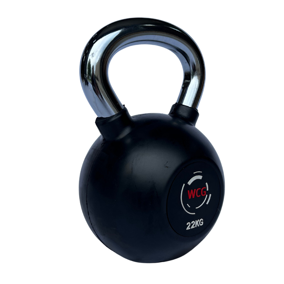 Обгумована гиря з хромованою ручкою WCG 22 кг спеціально розроблена для функціональних тренувань всього тіла, тому дозволить вам одночасно зміцнити серце, розвинути силу і наростити м'язи.