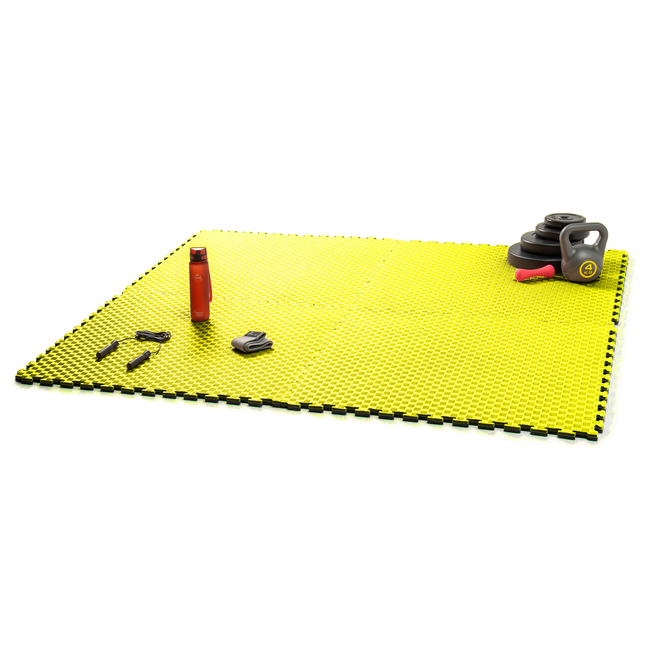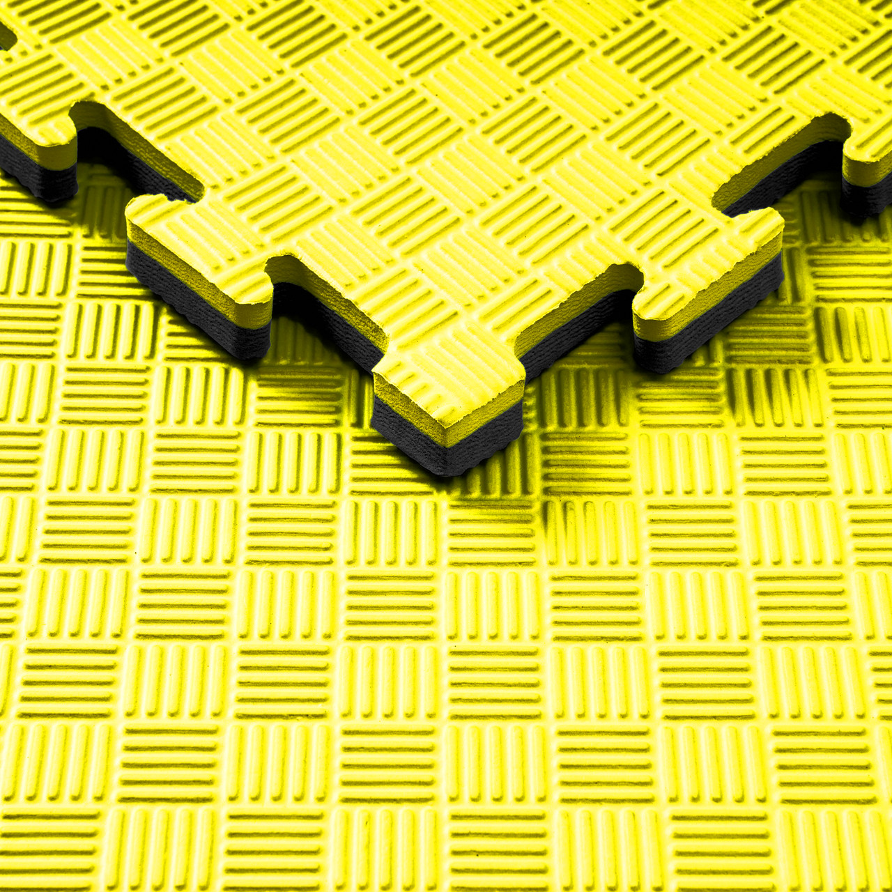 МатТатамі1000х1000х20 мм жовто чорнийndash; є одним із найпопулярніших та універсальних видів підлогових покриттів для дитячих майданчиків, спортивних закладів, фітнес-клубів та інших спортивних приміщень. Вони виробляються з безпечного матеріалу на основі етиленвінілацетату (EVA/ЕВА) мають низьку вагу та простоту в монтажі. Татамі складаються з пазлів, що легко з'єднуються між собою, що робить процес монтажу швидким і простим.