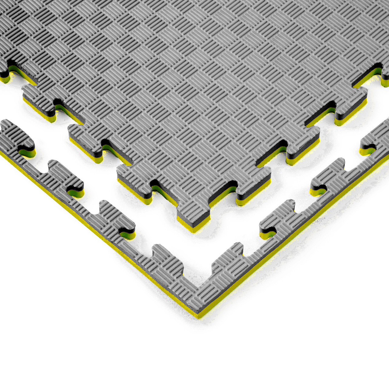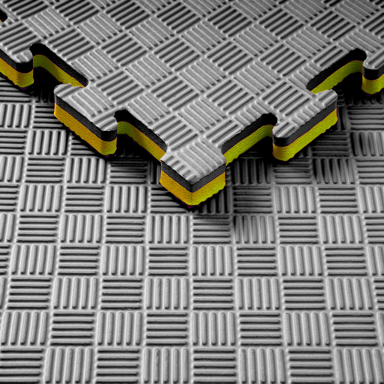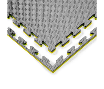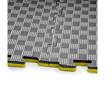 МатТатамі1000х1000х20 мм чорно жовтіndash; є одним із найпопулярніших та універсальних видів підлогових покриттів для дитячих майданчиків, спортивних закладів, фітнес-клубів та інших спортивних приміщень. Вони виробляються з безпечного матеріалу на основі етиленвінілацетату (EVA/ЕВА) мають низьку вагу та простоту в монтажі. Татамі складаються з пазлів, що легко з'єднуються між собою, що робить процес монтажу швидким і простим.
