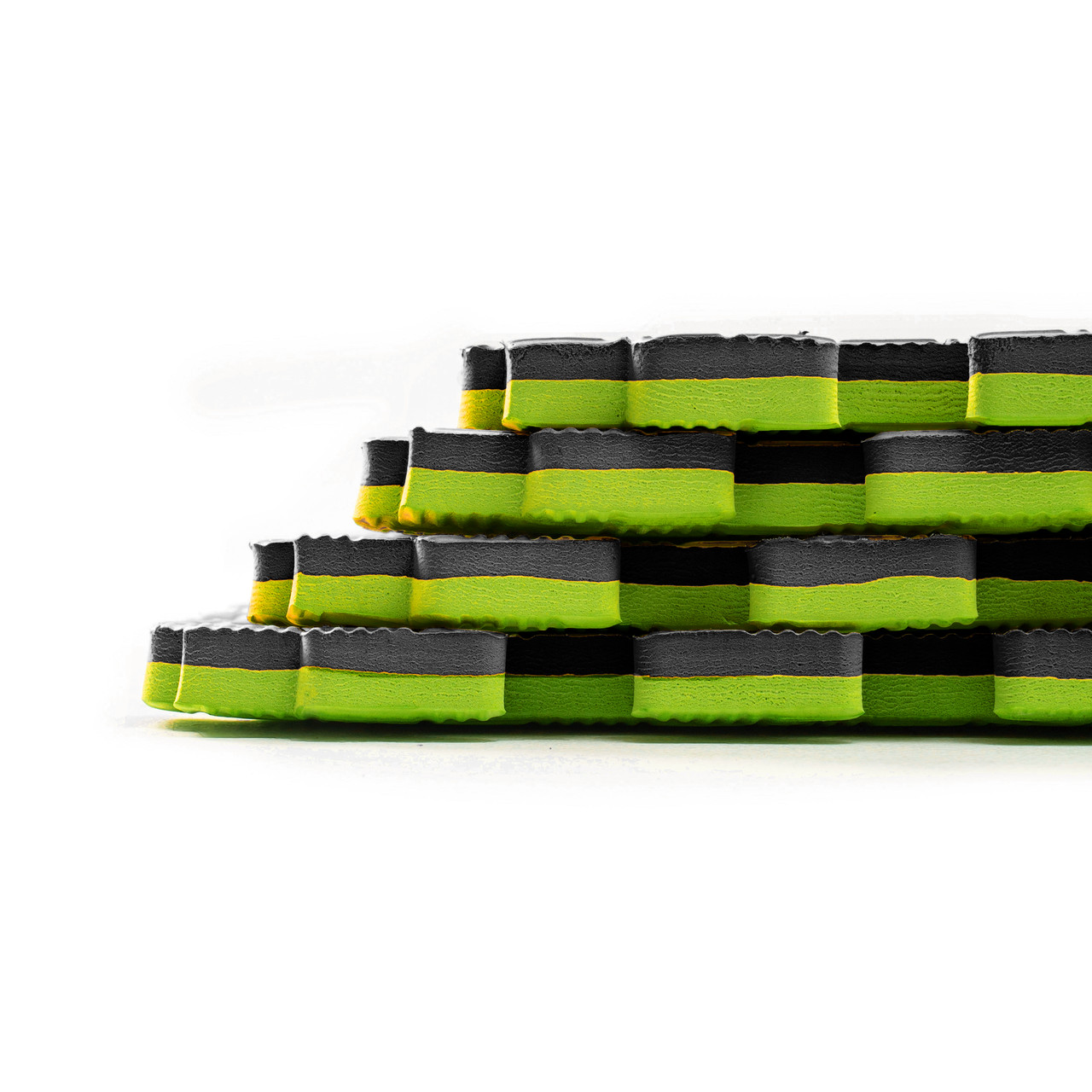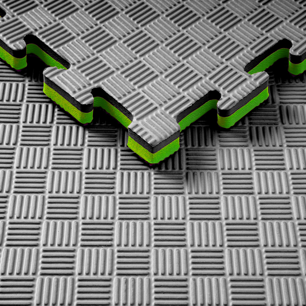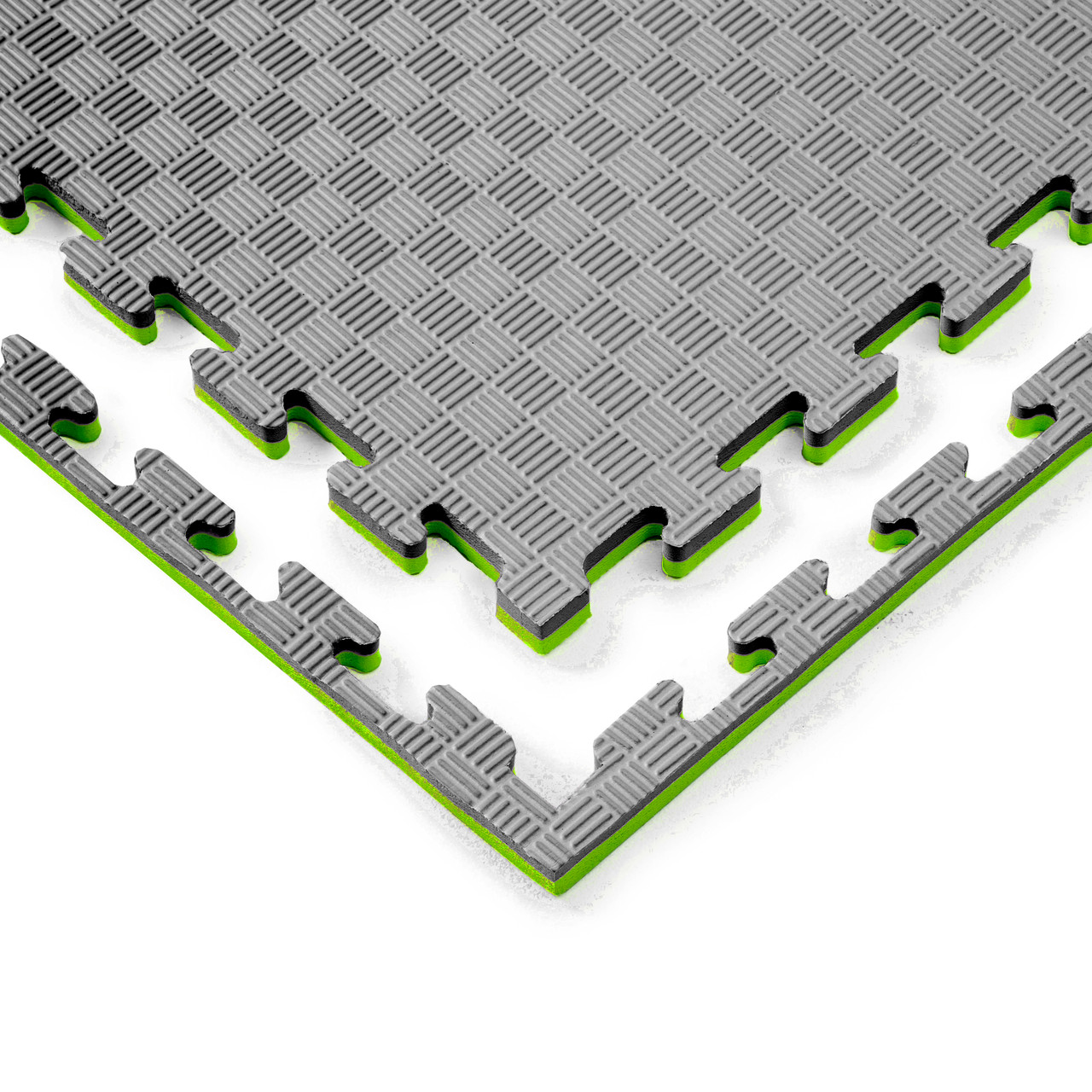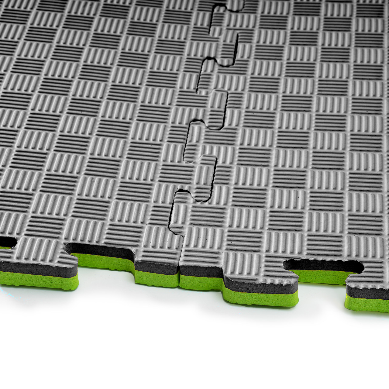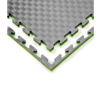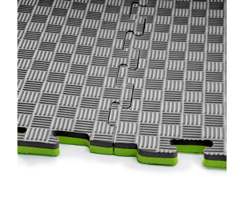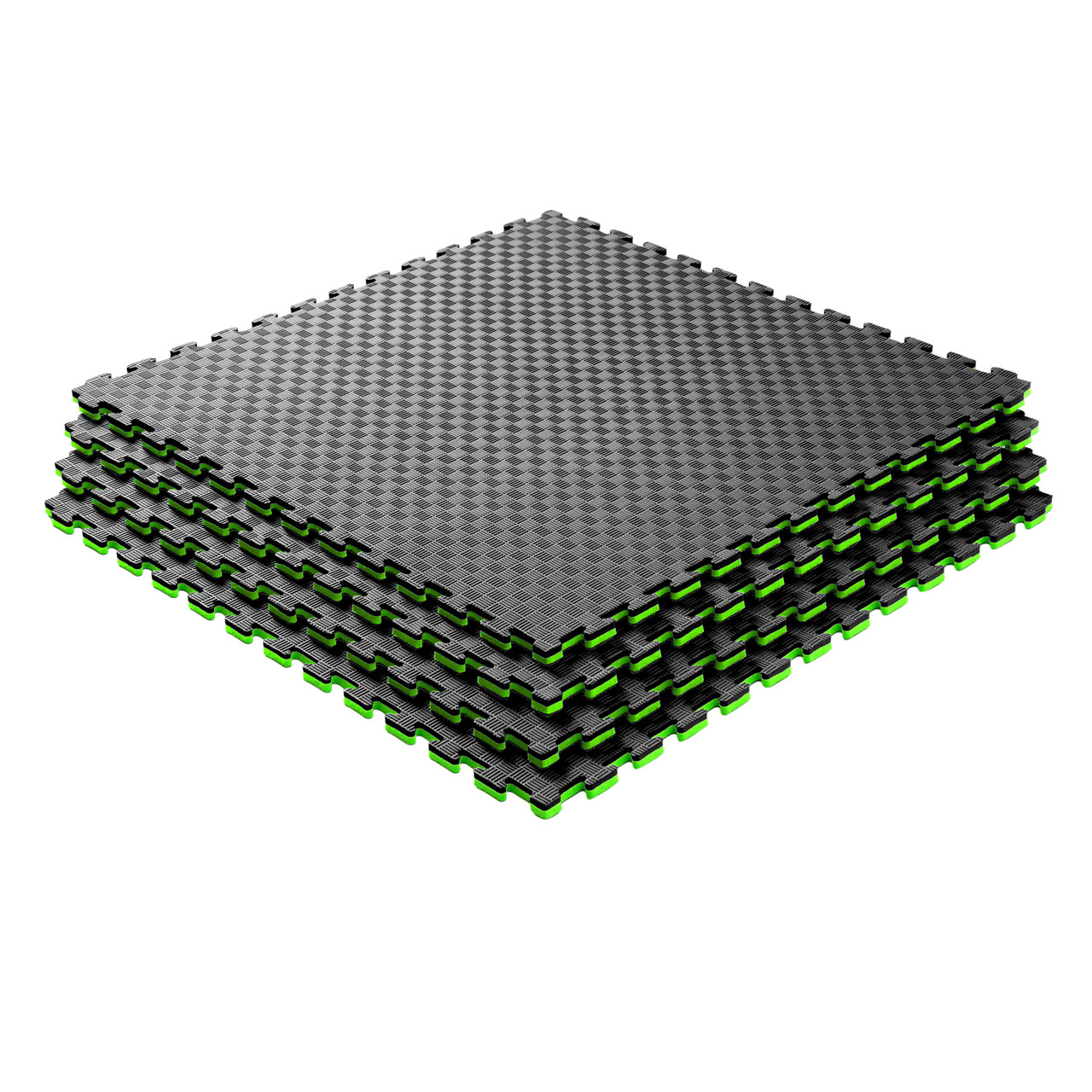 МатТатамі1000х1000х20 мм чорний і зелений ndash; є одним із найпопулярніших та універсальних видів підлогових покриттів для дитячих майданчиків, спортивних закладів, фітнес-клубів та інших спортивних приміщень. Вони виробляються з безпечного матеріалу на основі етиленвінілацетату (EVA/ЕВА) мають низьку вагу та простоту в монтажі. Татамі складаються з пазлів, що легко з'єднуються між собою, що робить процес монтажу швидким і простим.