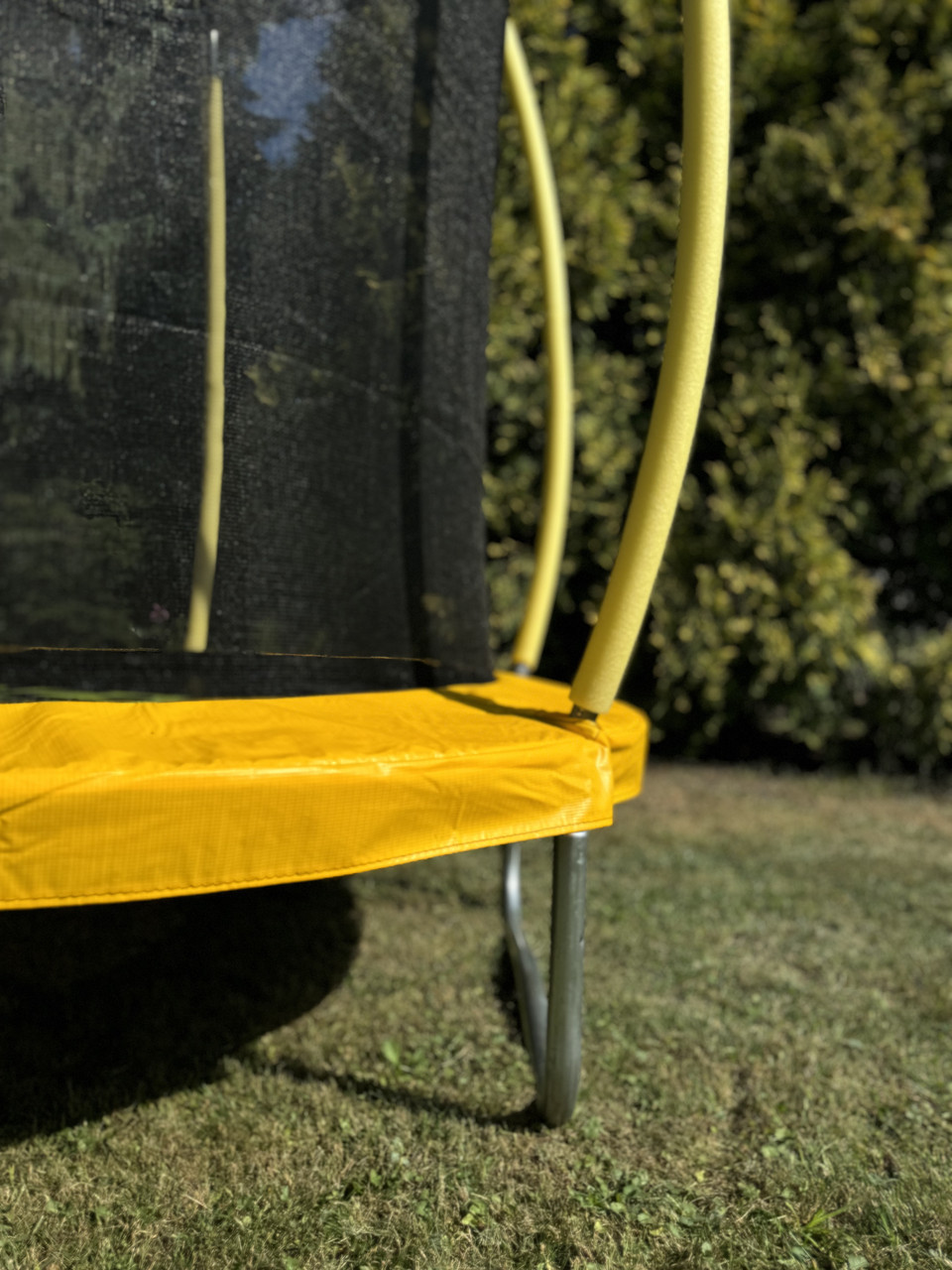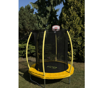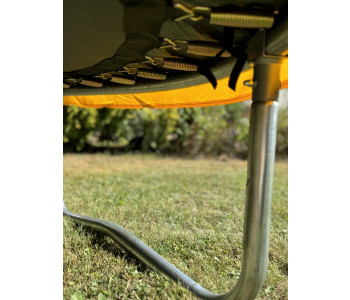 Батут виготовлений з високоякісних та довговічних матеріалів, що забезпечує його надійність та стійкість до навантажень. Конструкція батута включає спеціально розроблену систему кріплення та амортизації, що гарантує безпеку при використанні та мінімізує ризик травм. Всі елементи батута, включаючи сітку та пружини, відповідають суворим європейським стандартам безпеки, що підтверджує відповідність міжнародним вимогам та забезпечує максимальний комфорт та захист для дітей.
