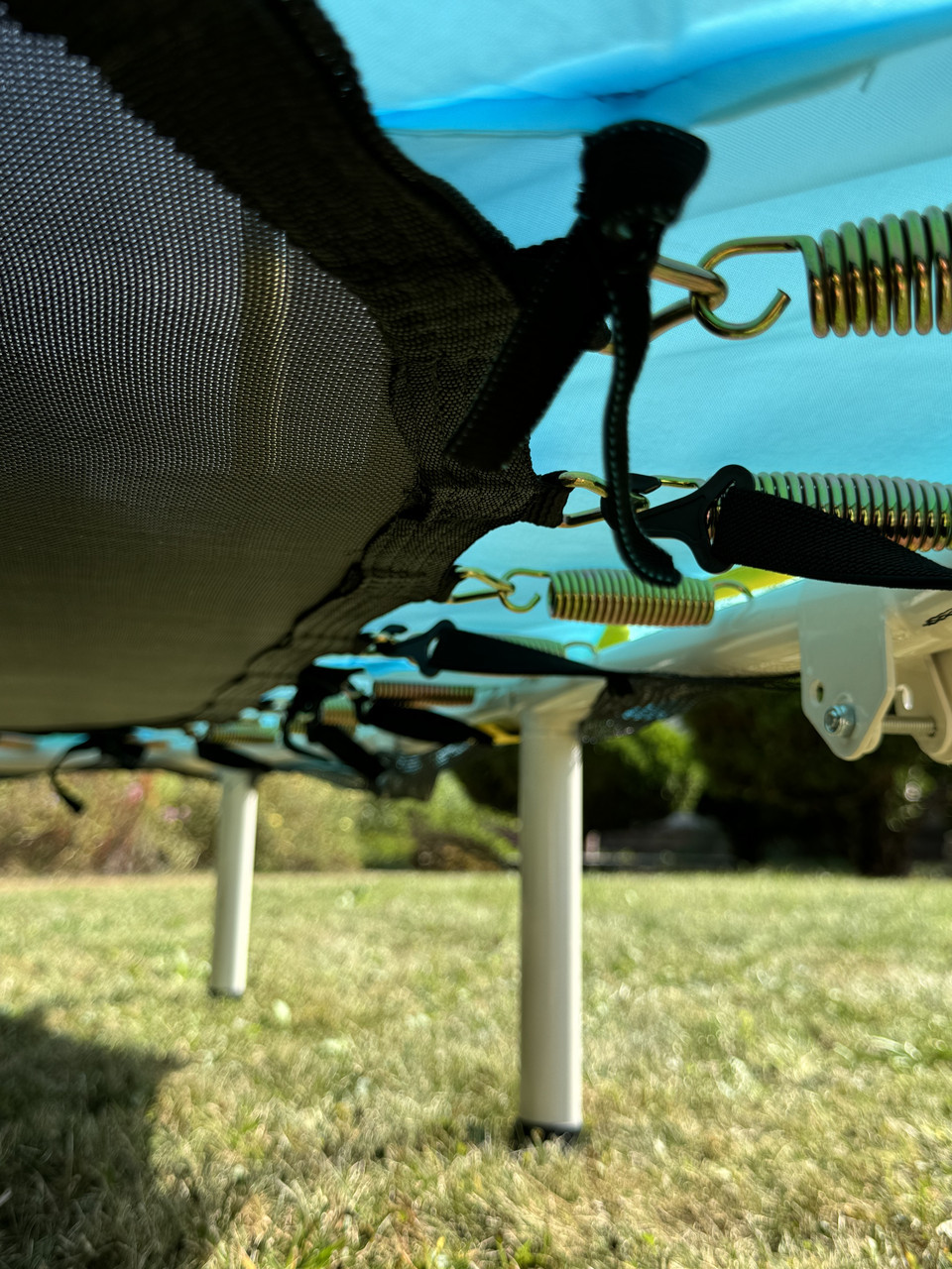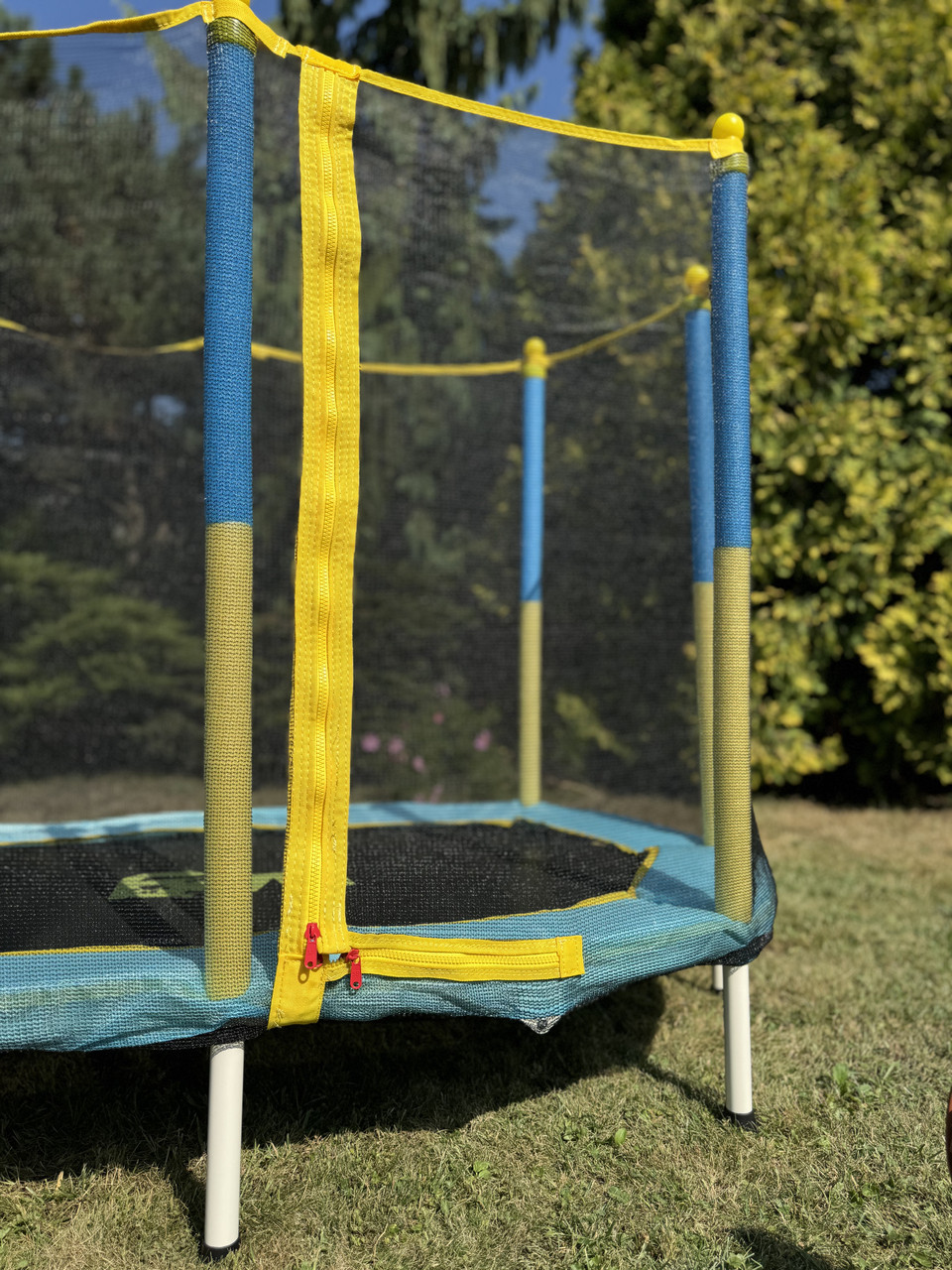 Батут виготовлений з високоякісних та довговічних матеріалів, що забезпечує його надійність та стійкість до навантажень. Конструкція батута включає спеціально розроблену систему кріплення та амортизації, що гарантує безпеку при використанні та мінімізує ризик травм. Всі елементи батута, включаючи сітку та пружини, відповідають суворим європейським стандартам безпеки, що підтверджує відповідність міжнародним вимогам та забезпечує максимальний комфорт та захист для дітей.