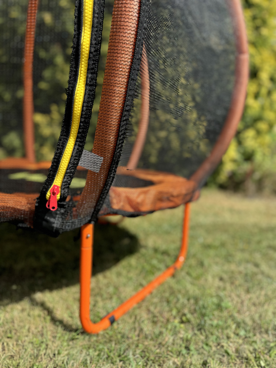 Виготовлений із якісних та міцних матеріалів, батут відрізняється надійністю та стійкістю до навантажень. Конструкція включає спеціалізовану систему кріплень та амортизації, що забезпечує безпеку використання та мінімізує ризик травм. Усі компоненти, включаючи сітку та пружини, відповідають суворим європейським стандартам безпеки, забезпечуючи комфорт та захист для дітей.