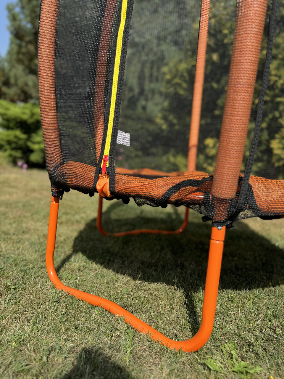 Батут виготовлений з високоякісних і довговічних матеріалів, що забезпечує його надійність та стійкість до навантажень. суворим європейським стандартам безпеки, що підтверджує відповідність міжнародним вимогам та забезпечує максимальний комфорт та захист для дітей.