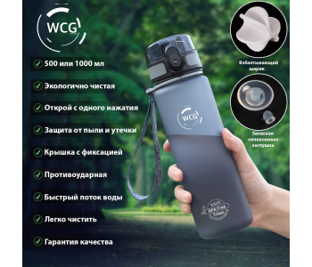 - Мундштук захищений надійною кришкою, завдяки чому пляшка WCGдовго зберігає свою гігієнічну чистоту, запобігаючи потраплянню бактерій у ротову порожнину.