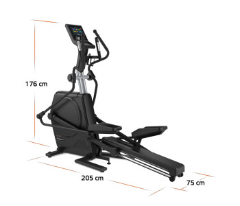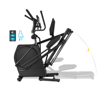 Професійний еліптичний тренажер, тиха робота, якісний дизайн, велика вага, 10,1" TFT LCD екран, 24 програми, електронний нахил, бездротова зарядка телефону, підставка для напоїв.