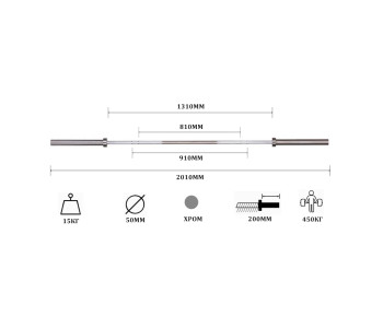 Вага: 15 кг, що відповідає міжнародним стандартам для жіночих грифів.