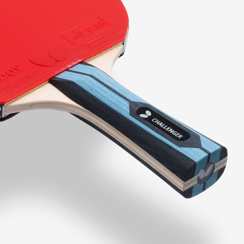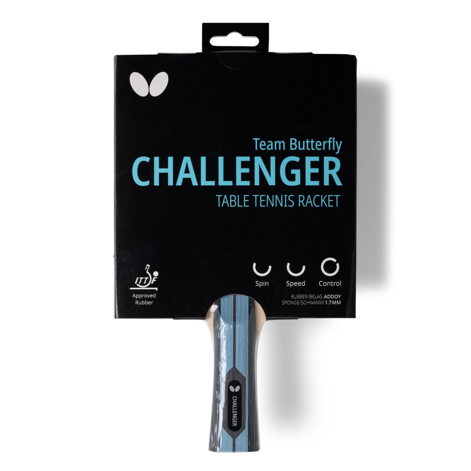 Ракетка Butterfly Team Challenger – це ракетка, яка характеризується високим рівнем контролю, але дозволяє виконувати швидкі і потужні удари. Ракетка має накладки Butterfly Addoy (товщина губки 1.7мм, має сертифікат ITTF) з обох боків. Butterfly Challenger – ідеальний вибір для новачків та гравців середнього рівня.